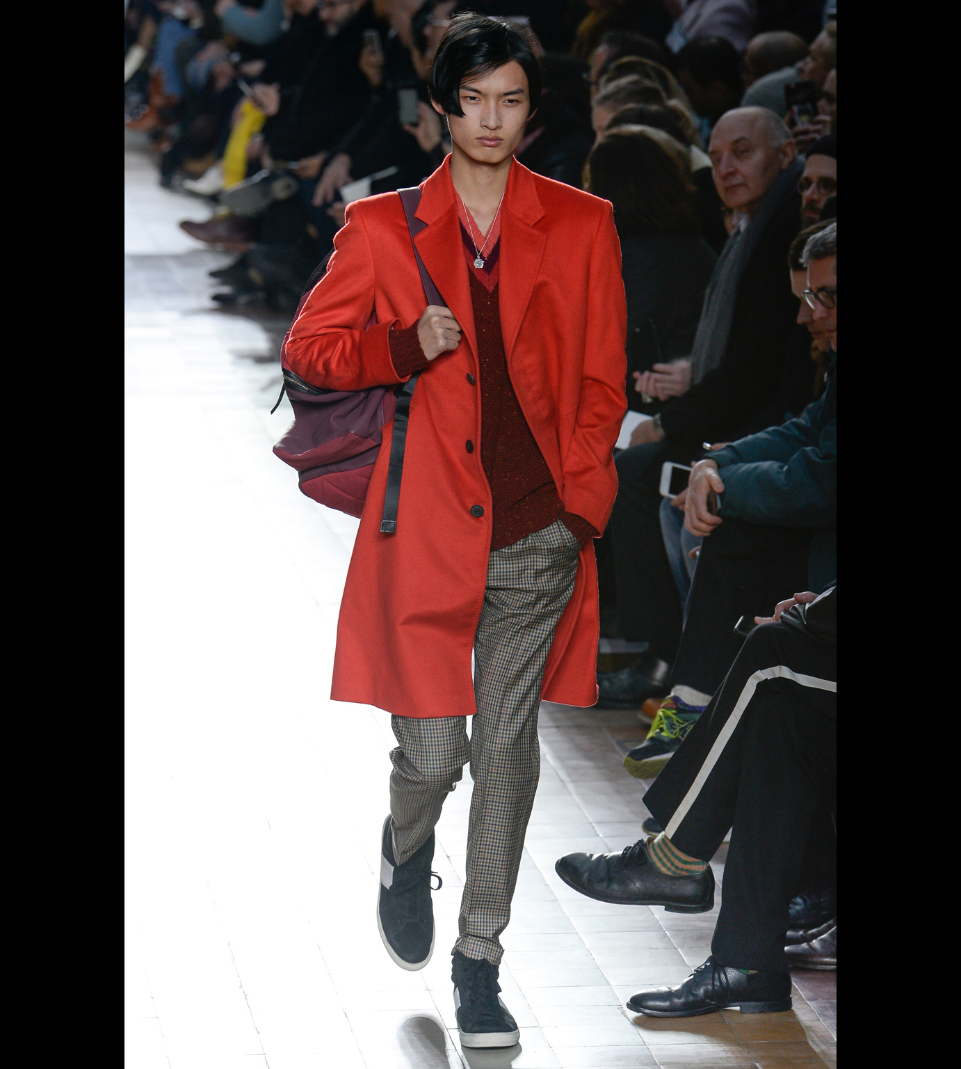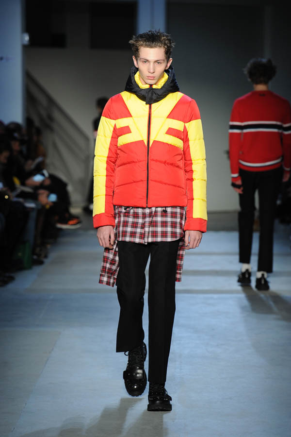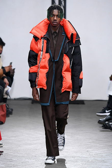 La marque japonaise Facetasm avec cette grosse doudoune rouge – orange, l’une des couleurs de cette saison.