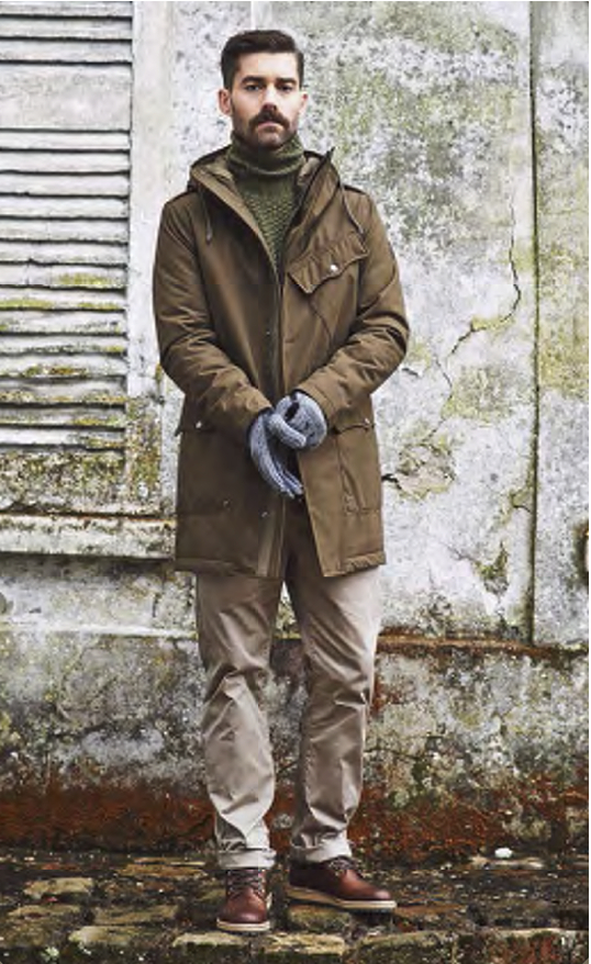 Des vêtements prévus contre les intempéries avec une veste imperméable à capuche et multipoches. De bonnes chaussures. Et un col roulé. Aigle.