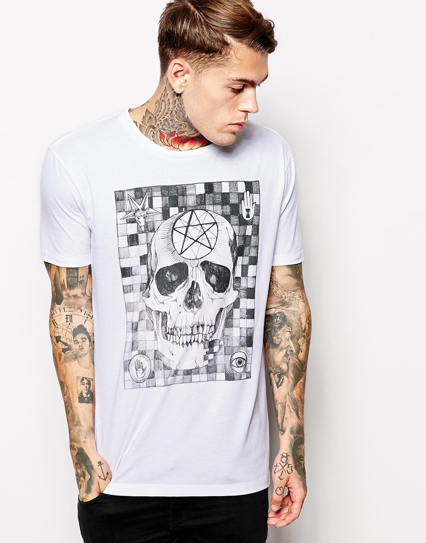 Pour aller en boite, un T-shirt blanc avec un motif imprimé pour se faire remarquer. Asos.