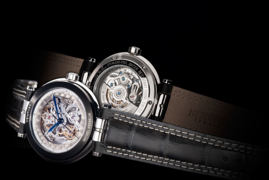 Parmi les nouveautés de cette année, beaucoup de modèles squelette : un verre saphir de chaque coté de la boite permet de voir le fonctionnement du mécanisme, qui est automatique la plupart du temps pour ce genre de montre.