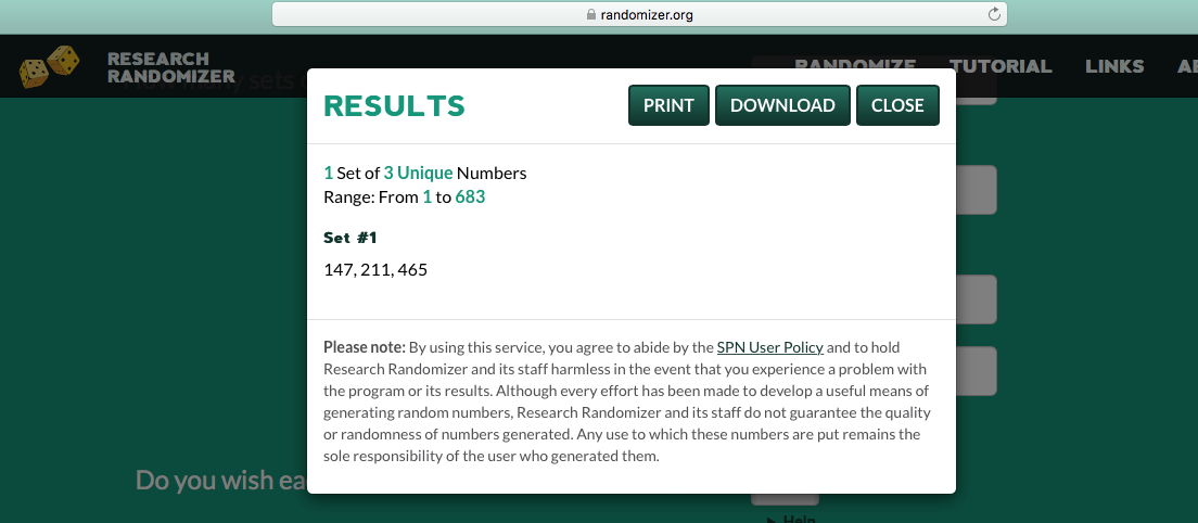 Voici le tirage au sort des 3 gagnants par www.randomizer.org.