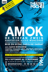 « Amok » de Stefan Zweig au Théâtre de Poche-Montparnasse. L’amok est un accès de violence meurtrière qui intervient subitement chez un individu. La pièce se passe sur un bateau où le narrateur fait la rencontre d’un homme mystérieux… Une pièce à suspens. L’auteur autrichien est à l’affiche avec une autre pièce « Le monde d’hier », son autobiographie dans la grande salle du Théâtre des Mathurins. Un texte que l’auteur a posé à son éditeur en 1942, la veille de son suicide.