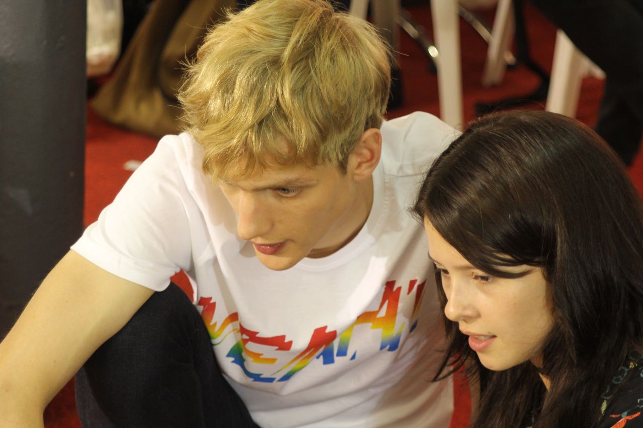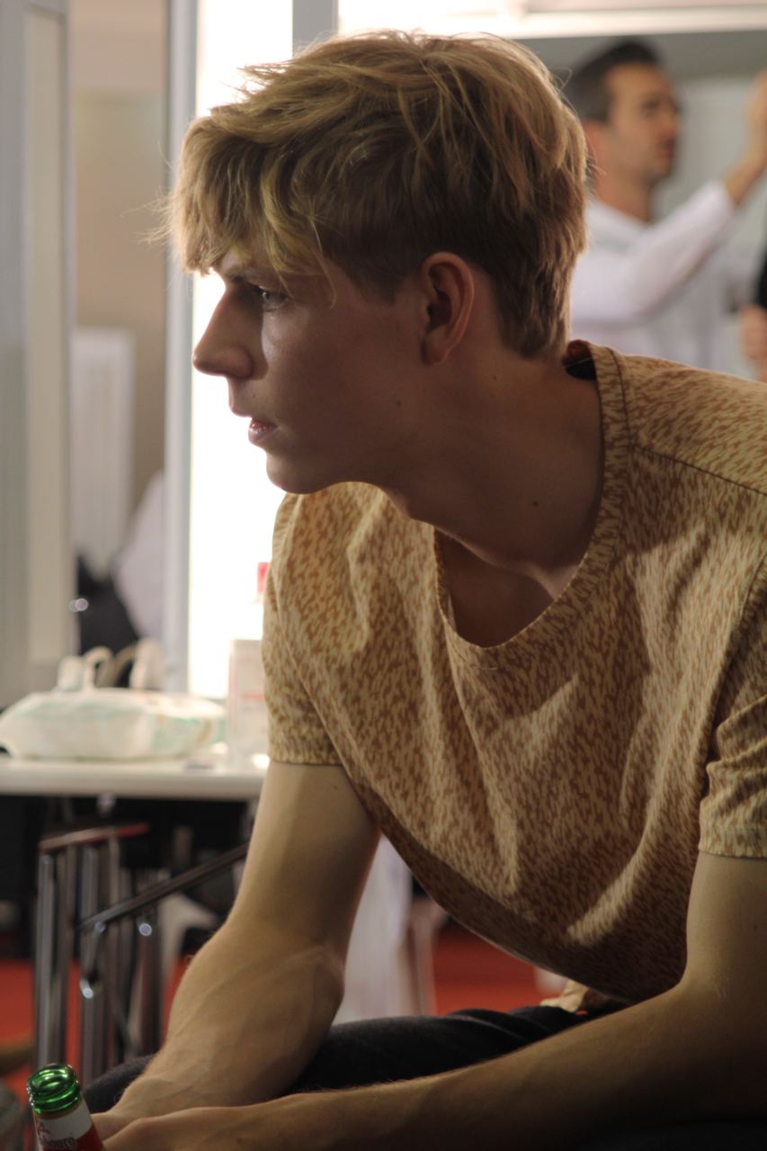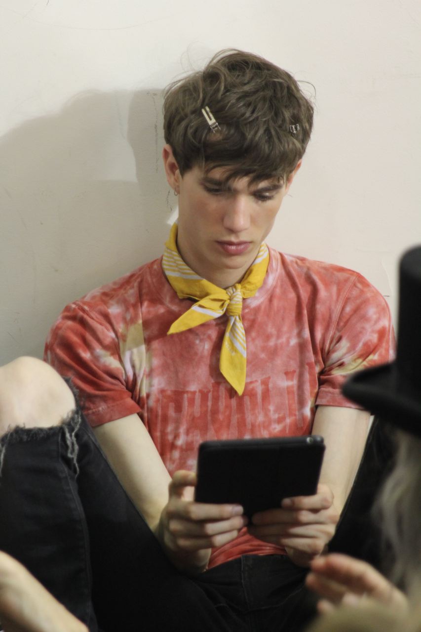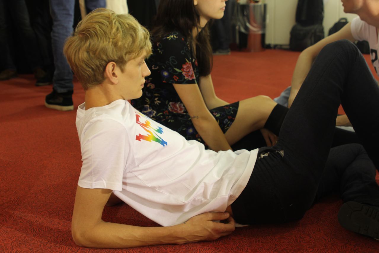 Les jeunes mannequins choisis pour présenter la collection été de Paul Smith profitent de l’avant défilé pour se relaxer, faire une microsieste, méditer, consulter leurs messages sur leurs smartphones, leurs tablettes ou leurs laptops, avant de passer entre les mains, des coiffeurs, maquilleurs et habilleurs.