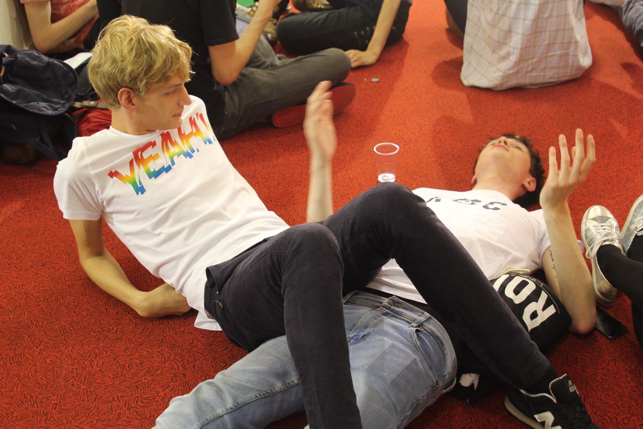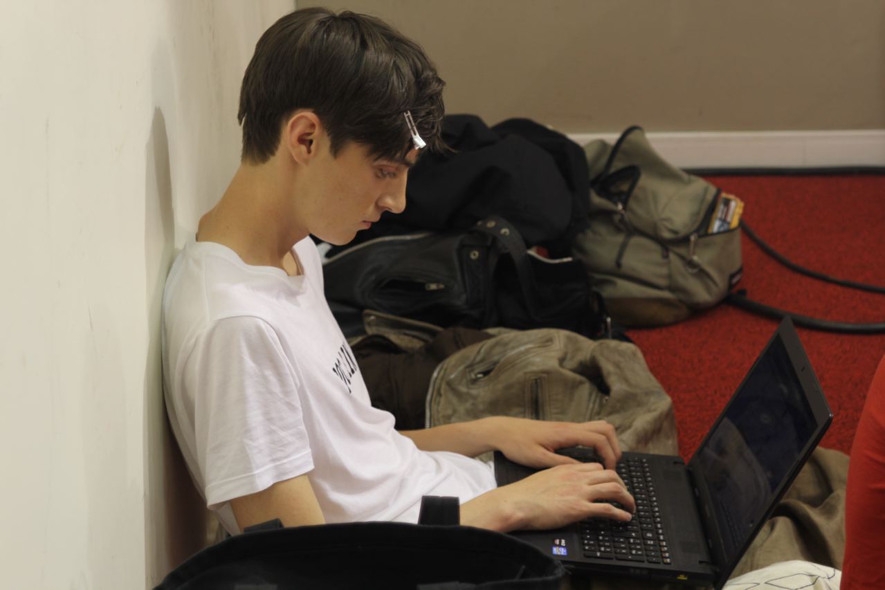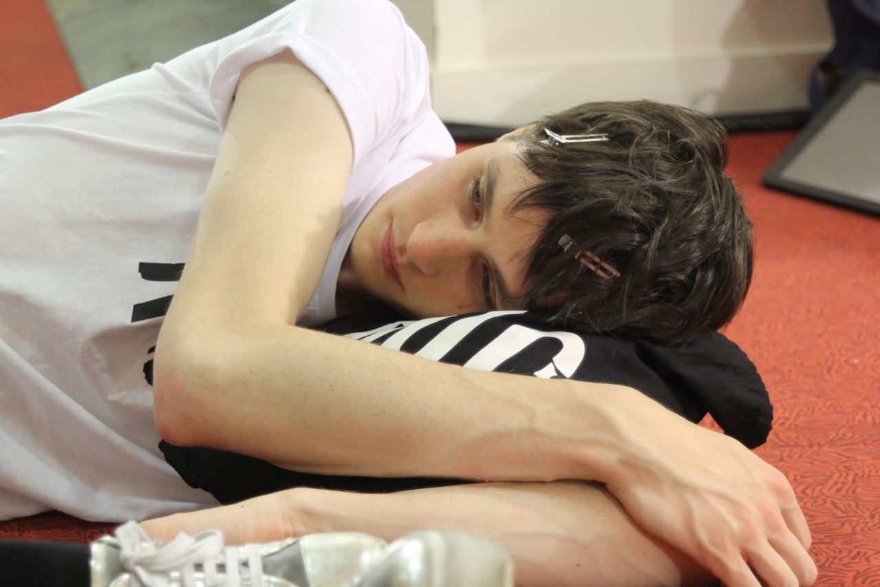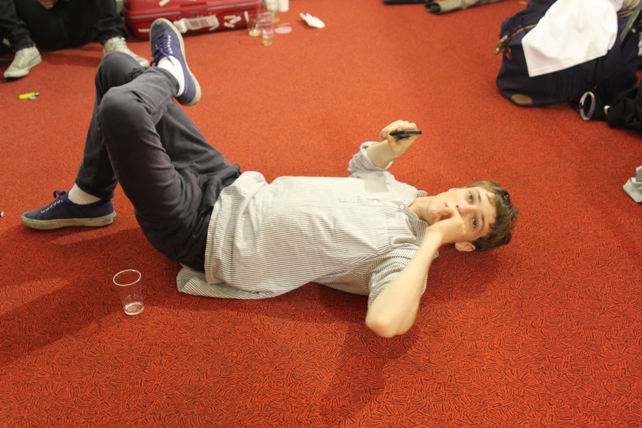 Les jeunes mannequins choisis pour présenter la collection été de Paul Smith profitent de l’avant défilé pour se relaxer, faire une microsieste, méditer, consulter leurs messages sur leurs smartphones, leurs tablettes ou leurs laptops, avant de passer entre les mains, des coiffeurs, maquilleurs et habilleurs.