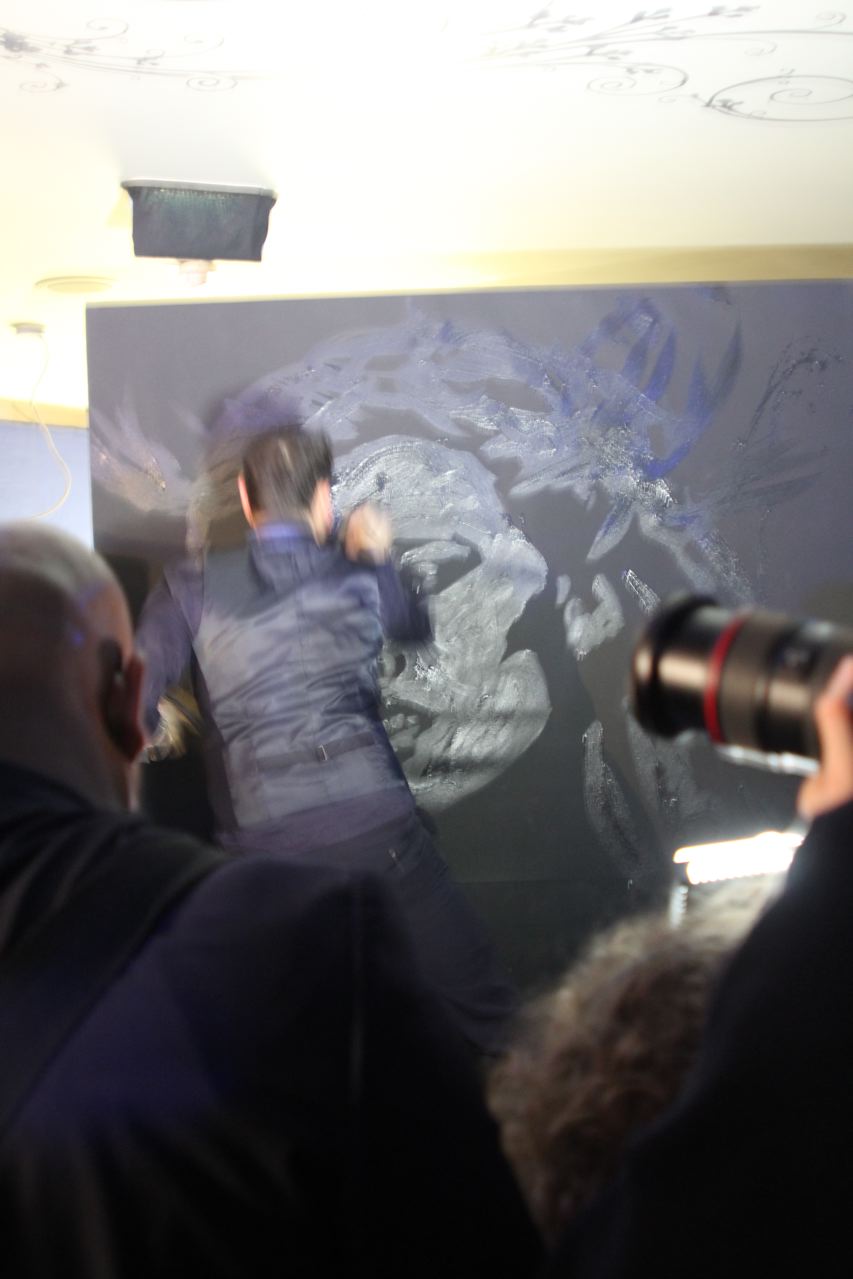 L’artiste « Speed painter » Boris Normand a réalisé en direct devant nous en 4 minutes, un portrait de Giorgia May Jagger. Il m’a dit qu’il s’est entrainé une quarentaine de fois avant pour être capable de réaliser cette performance.