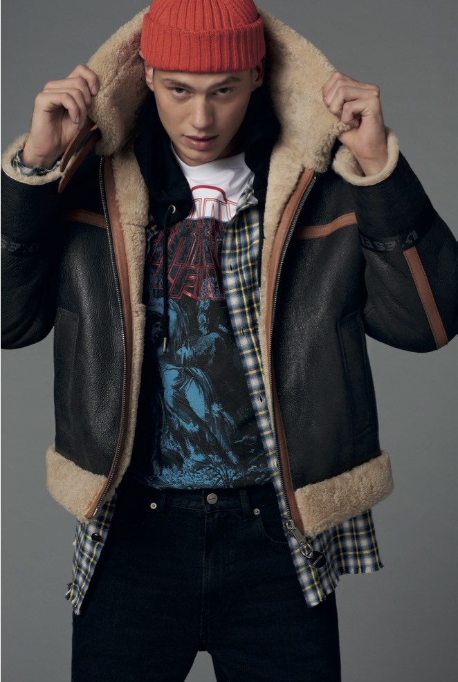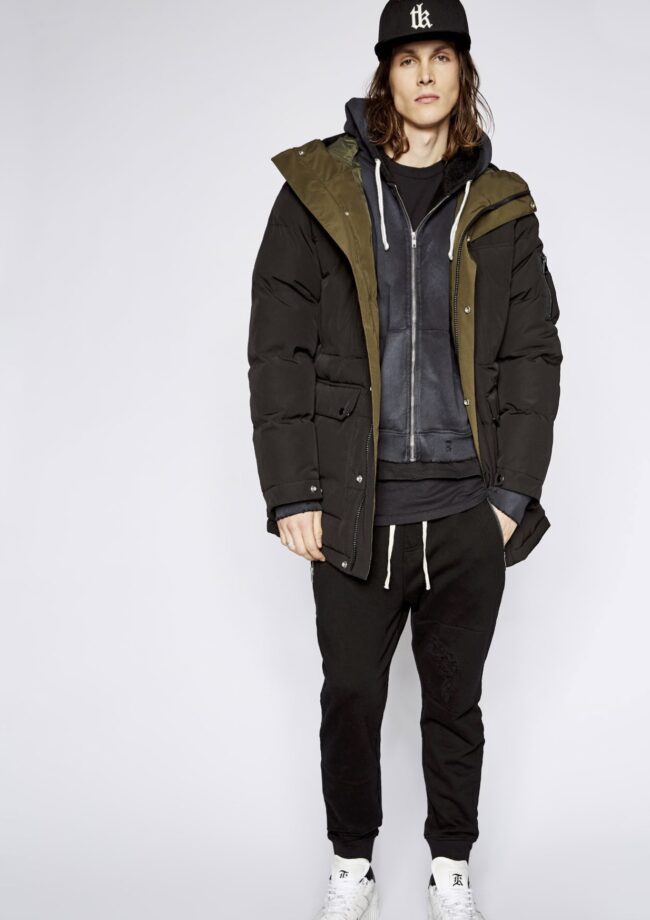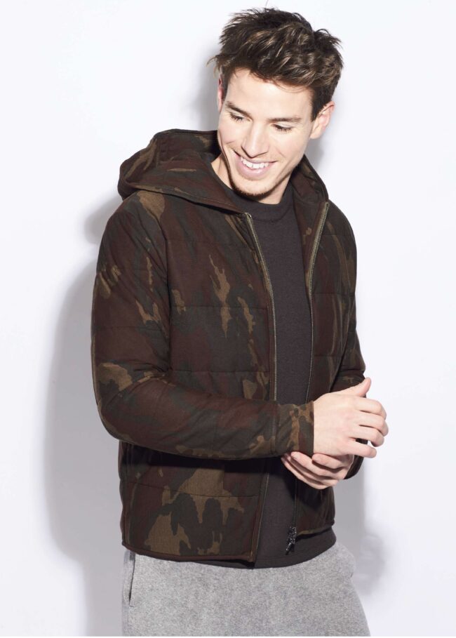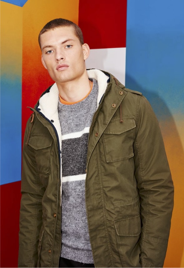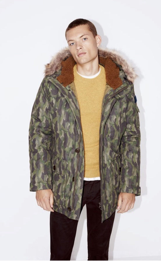 Au niveau des couleurs, on voit beaucoup de rouge, de kaki, d’imprimé camouflage revisité, que ce soit sur des blousons bombers, des doudoune ou des parkas.