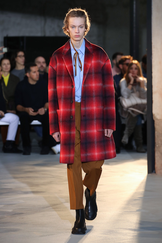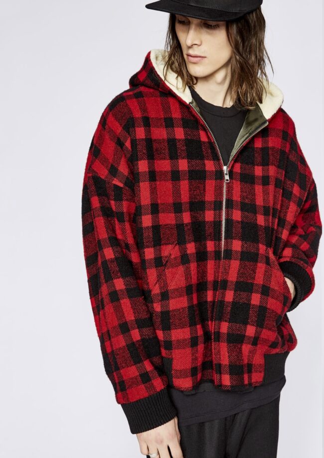 Des manteaux à carreaux rouges et noirs ou rouges et verts (Sacai, Alexander McQueen, Versace, Junj J, DSquared2). Parfois les carreaux sont d’autres couleurs.