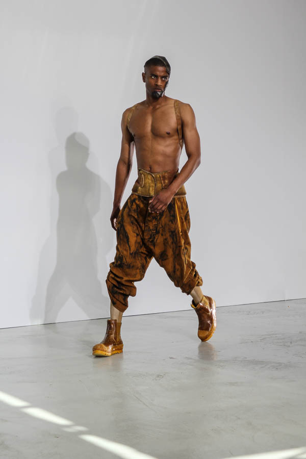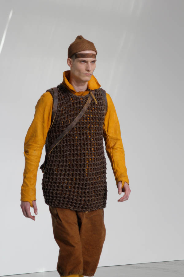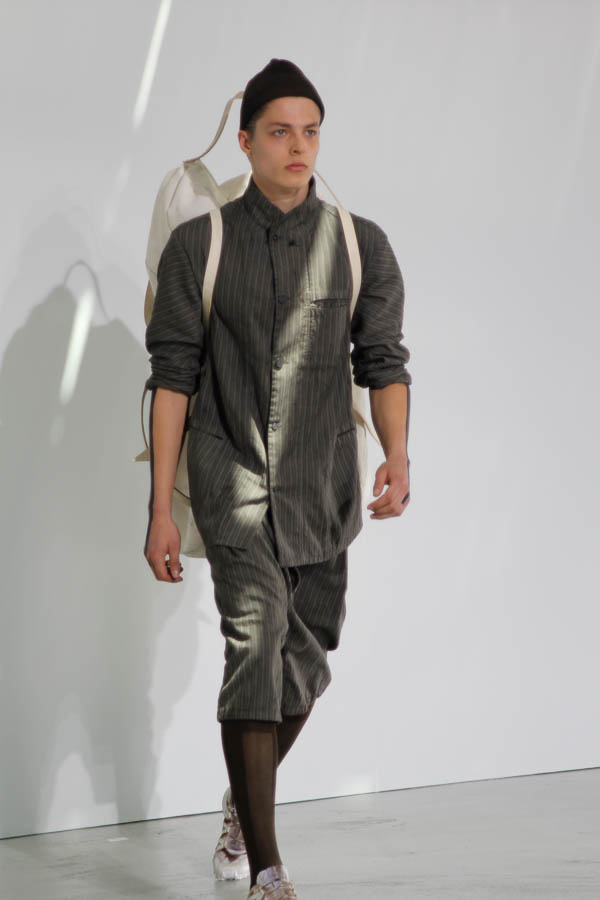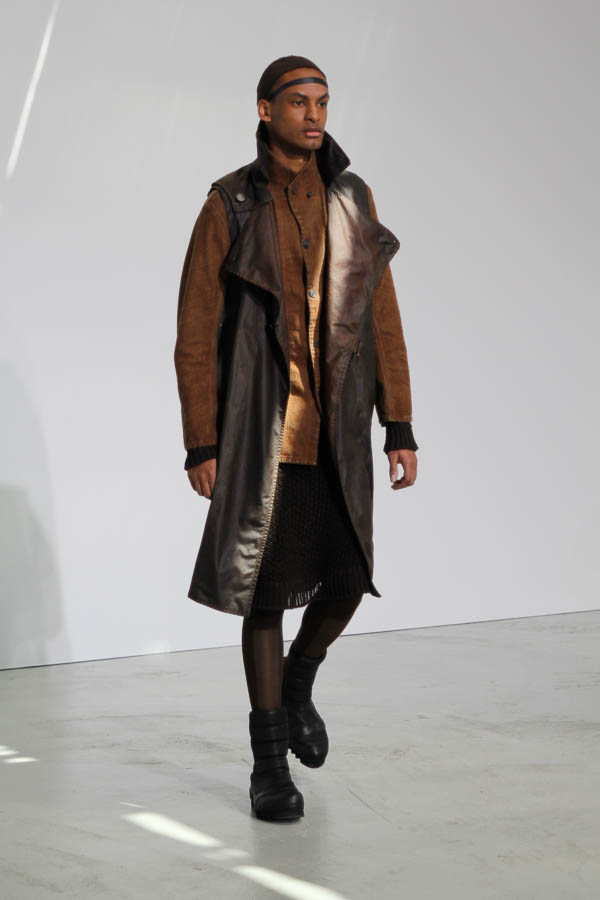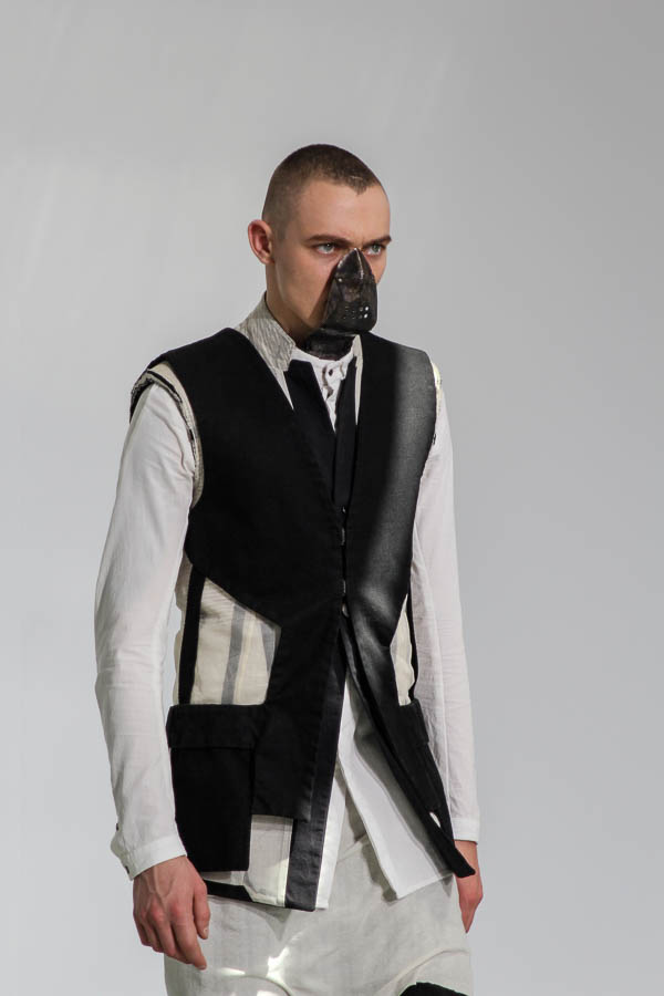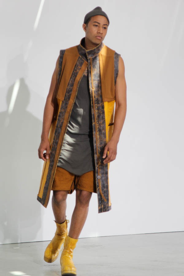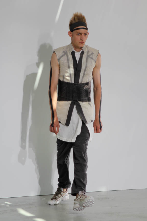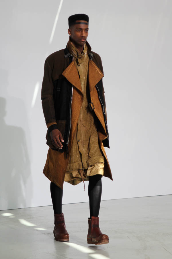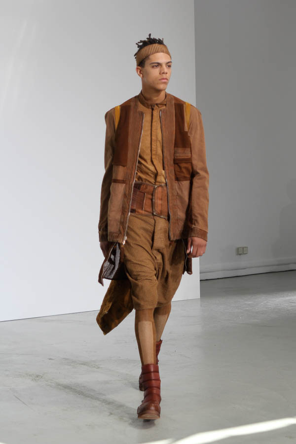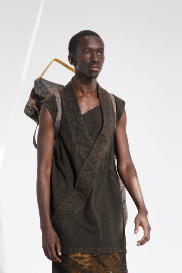 Boris Bidjan Saberi a présenté une collection été 2017 fidèle à son style inspiré des peuples nomades. On retrouve des vestes longues, kimonos – peignoirs ceinturées, des cols asiatiques, des vêtements rapiécés qui évoquent la vie de grands voyageurs, des vestes de peau, tuniques, jupes, sarouels, lainage grosse jauge, sac à dos. Noire en début de défilé, la collection peu à peu se teinte de variations de marrons, puis de jaunes safran, lumineux, solaires.