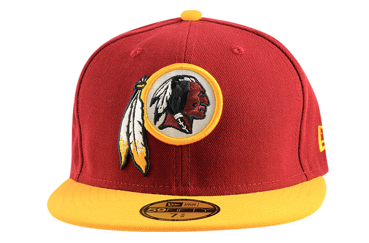 Casquette New Era 5950 rouge à visière plate et logo de l’équipe des Redskins.