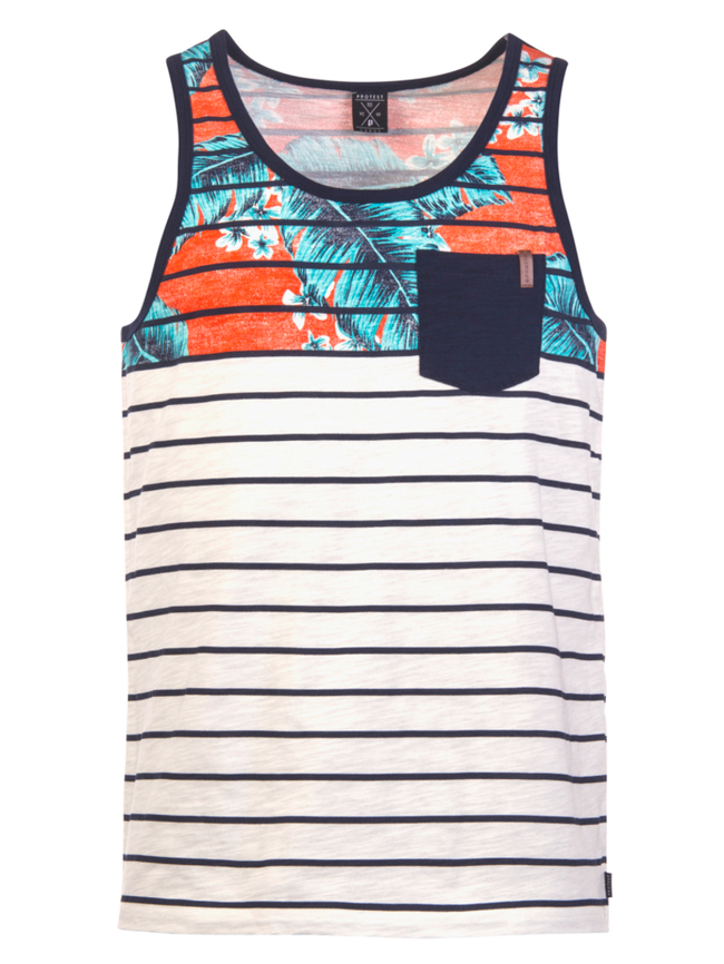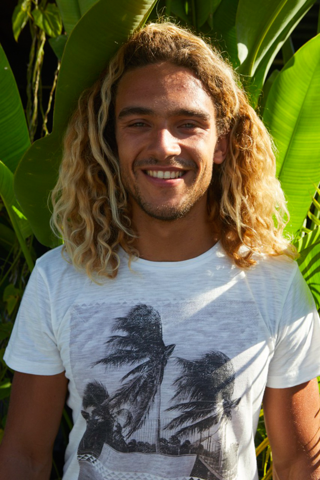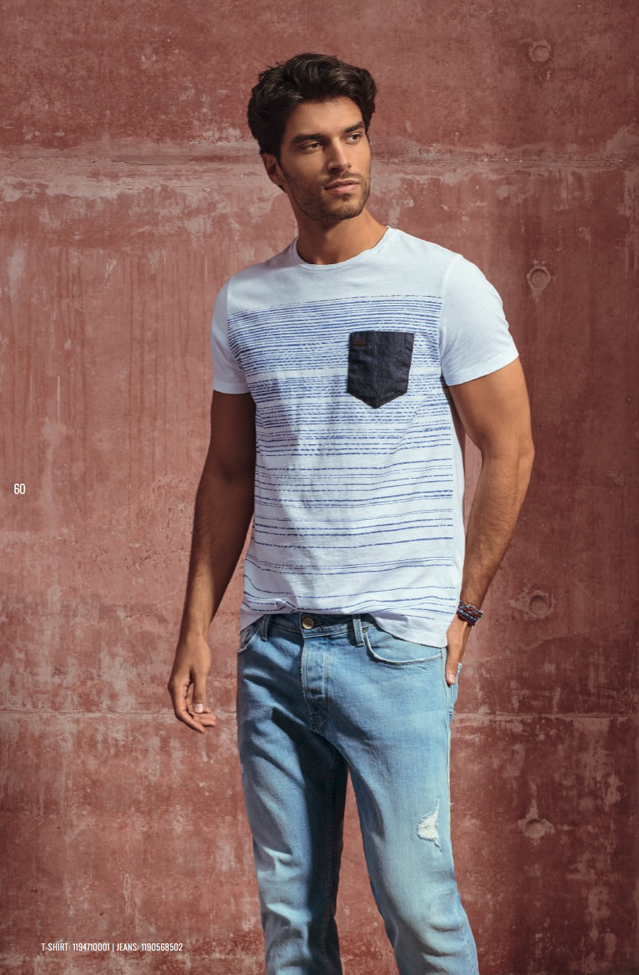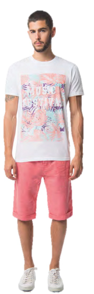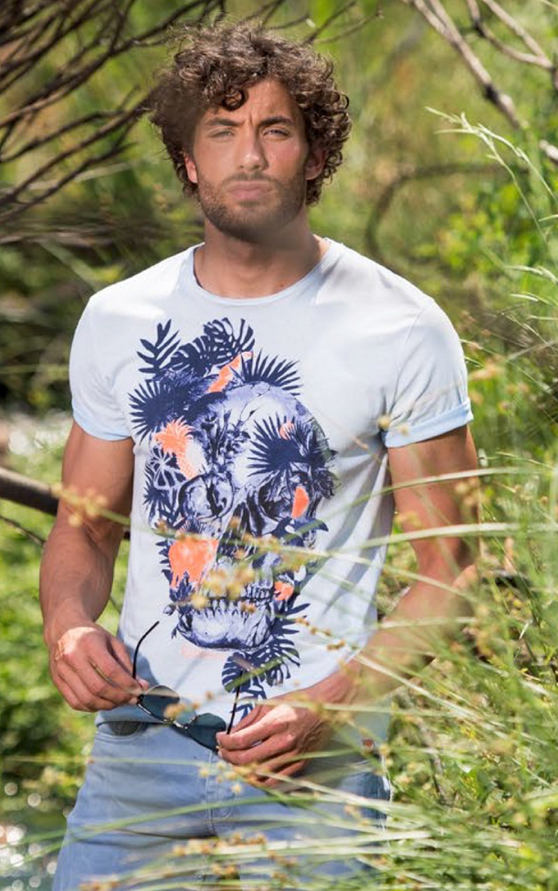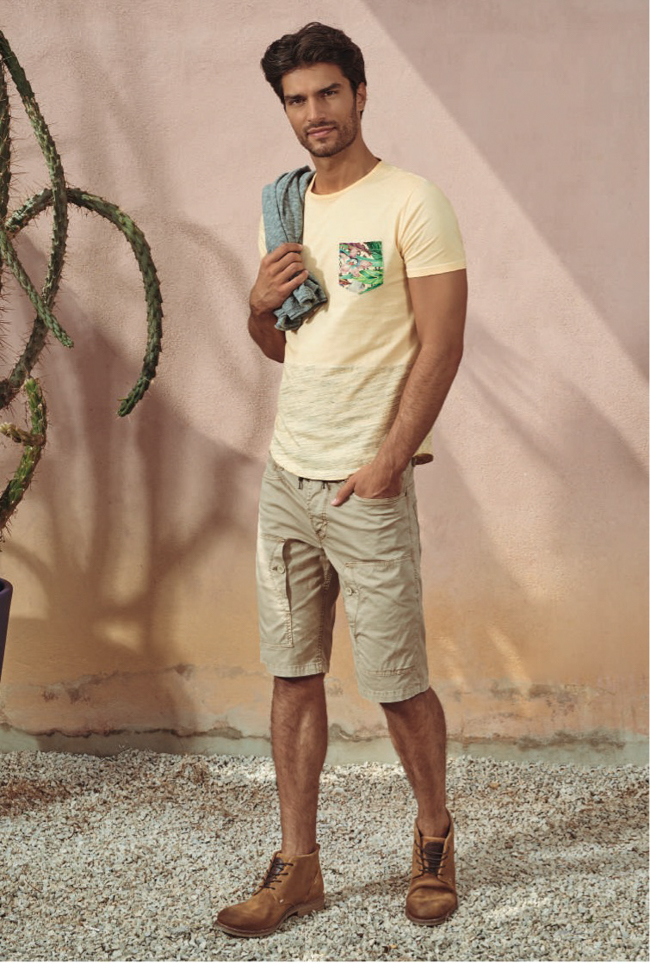 Ces dernières années, les tendances mode des tee shirts étaient claires est nettes. Nous avons eu une période rock, têtes de morts, puis ridicool, sea punk, une année avec des mots têtes de lion, une autre c’était des tigres, des loups, puis les tee shirts à messages. Cette année c’est moins clair. Aucune tendance nouvelle n’apparaît. comme sur les chemisettes et les polos, on voit beaucoup d’imprimés tropicaux et de motifs répétitifs. Mais aussi beaucoup de marinières, ça fait « 10 ans » que ça dure. Parfois un mélange marinière et palmiers… Toujours et encore, comme depuis des années des imprimés camouflage. Les messages, ça continue. Les têtes de mort et l’esprit rock reviennent. Au niveau des coupes, ils sont souvent ajustés et presque toujours dotés d’un col rond. La tendance c’est aussi le normcore, donc des unis basiques. Beaucoup de jaunes, j’y reviendrai…
