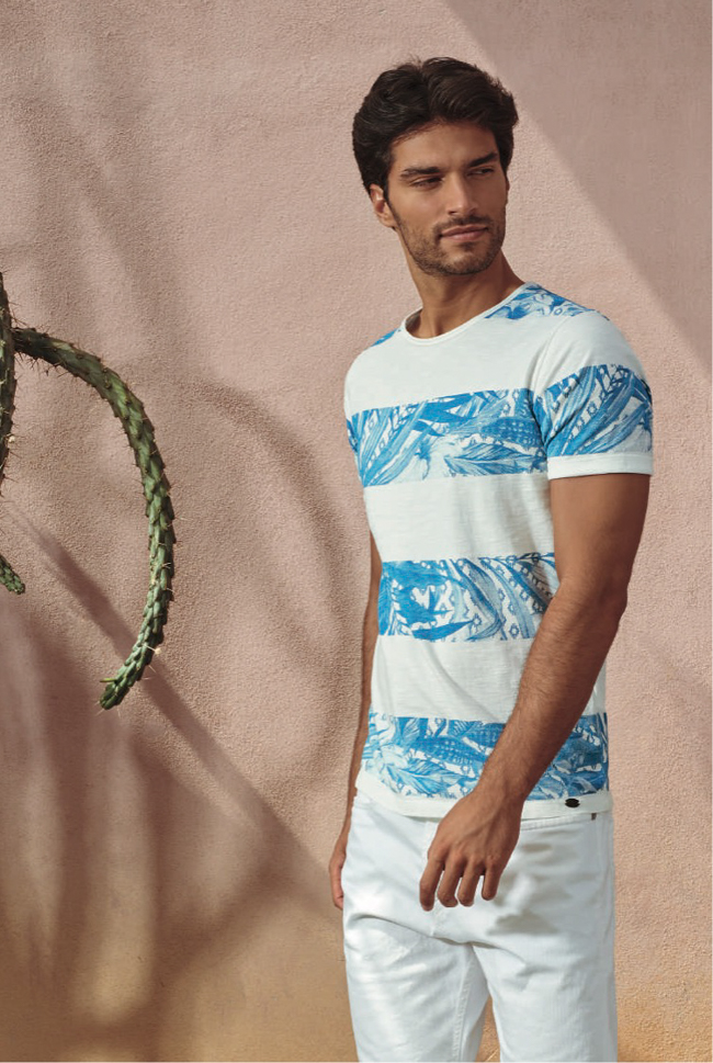 Cet été, ces 3 vêtements masculins suivent à peu près les mêmes tendances mode avec des imprimés végétaux tropicaux, de petits motifs répétitifs et des basics unis. Pour les Tee shirts, on retrouve également beaucoup, comme depuis 10 ans, des imprimés camouflage, et des rayures d’inspiration marinière.