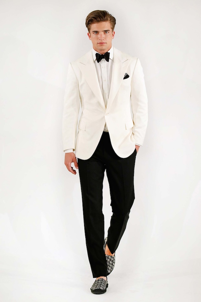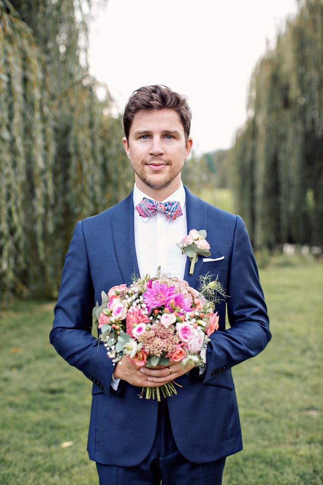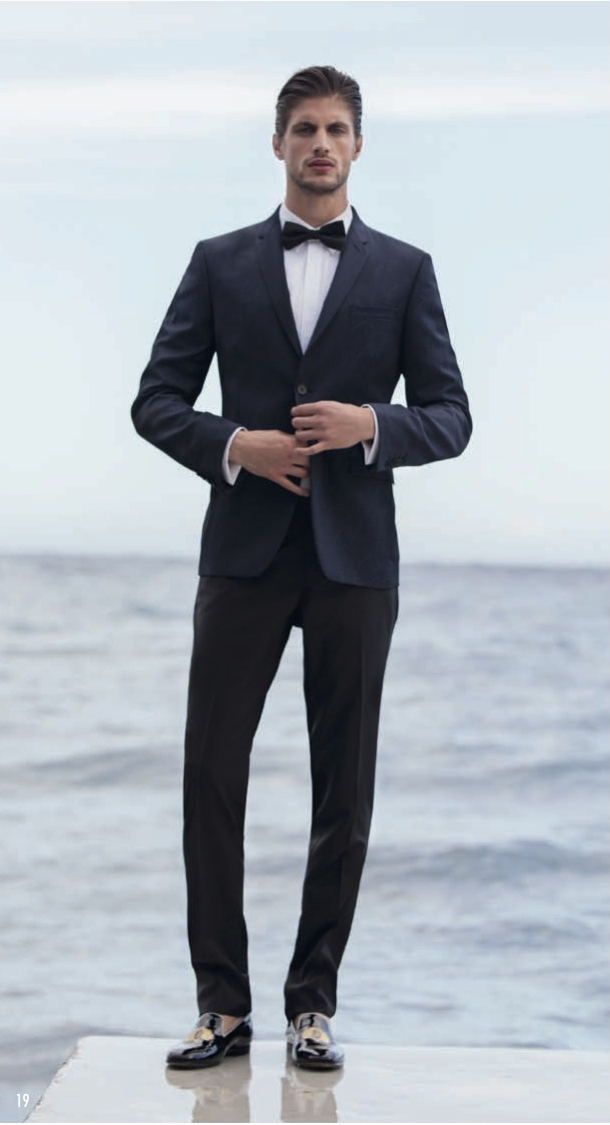 Dans cette sélection, volontairement je n’ai pas choisi que des costumes de mariés proprement dits. Certains peuvent re-servir pour d’autres occasions. Ce qui fait tout de suite « mariage », c’est le noeud papillon, même si l’on peut évidement porter une cravate, un ascot ou une lavallière. Je pense que c’est une bonne idée de sortir le grand jeu soit avec un costume 3 pièces, avec gilet, soit avec un col châle en satin, comme un smoking.