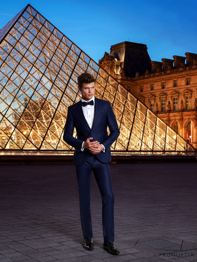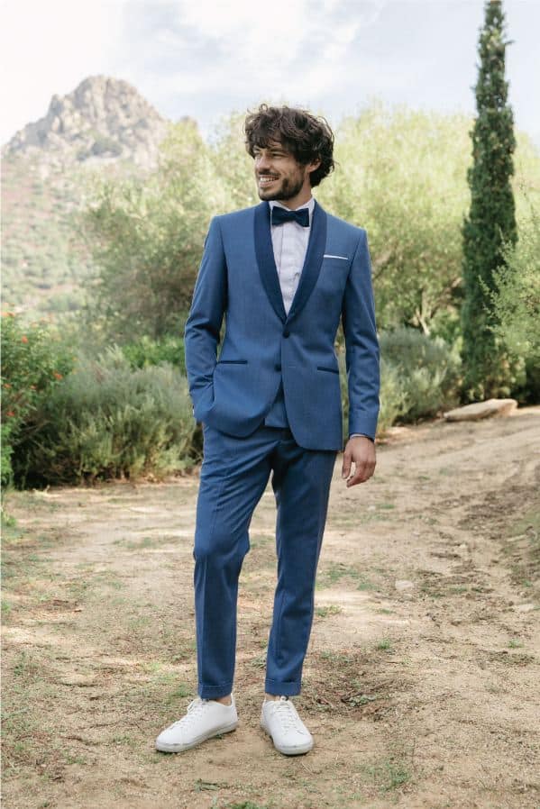 Pronuptia costume de marié bleu avec noeud papillon