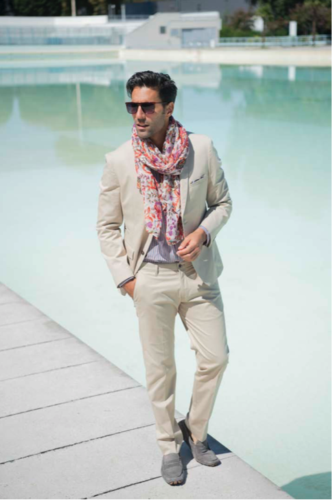 Cet été, les costumes sont caractérisés par des couleurs plus variées, des épaules plus larges et des tissus plus souples que ces dernières années. C’est aussi le retour du tailoring et des costumes complets mais avec souvent une petite entorse faite au pur classicisme.