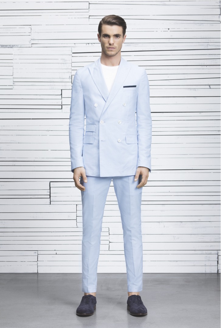 Costume Boss bleu clair pour une tenue chic de vacances d’été