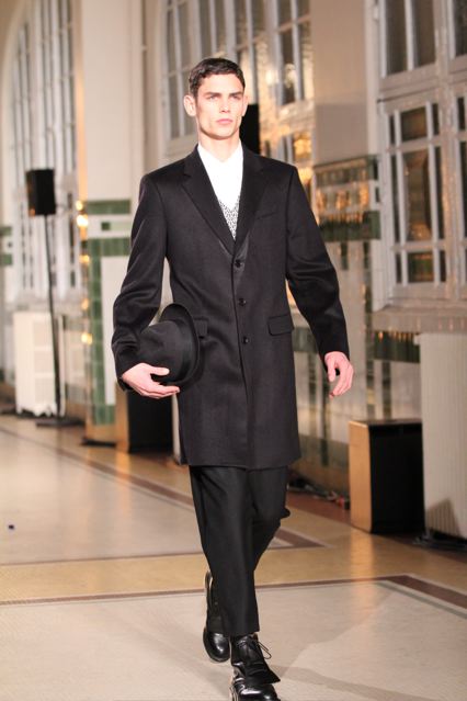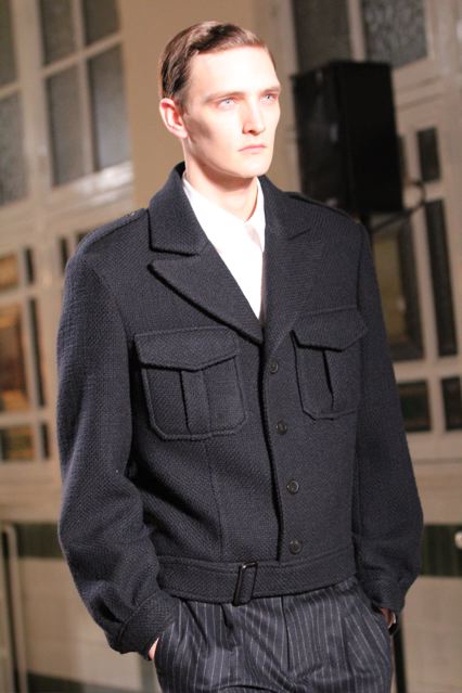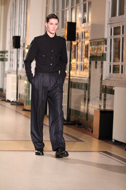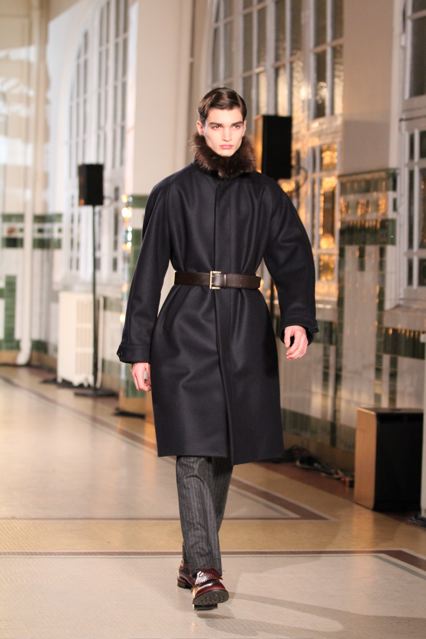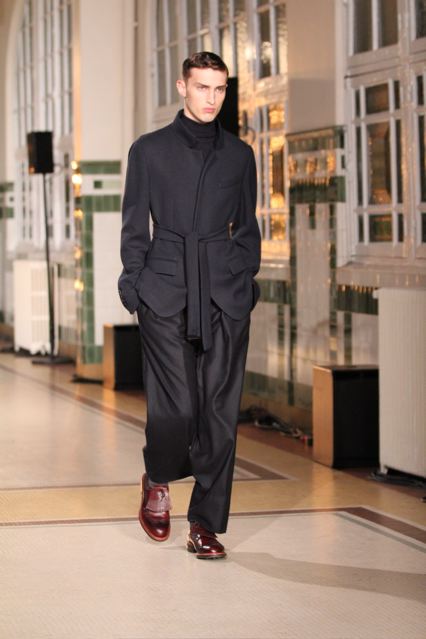 On voit une volonté d’élégance et de respect des traditions des tailleurs. Hormis quelques originalités comme un manteau sans manche ou un gilet ressemblant à un kimono. Quelques détails d’inspiration militaires sont là pour répondre au besoin de protection de notre époque. La fourrure et le cachemire répondent au besoin de douceur. Beaucoup de jeux de proportions avec des vêtements amples et d’autres ajustés. Des manteaux ceinturés.