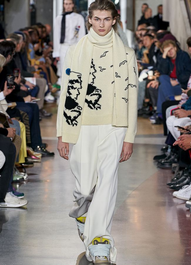 Envie de créativité, d’étonnement ? L’une des tendances mode de la saison, ce sont les pulls illustrés de personnages que l’on a vu chez Ami, Etro, Lanvin, Kid Super, MSGM. Parmi les autres marques créatives, des jacquards revisitant des motifs traditionnels, qui peuvent par exemple chez Isabel Marant évoquer de loin des tissages Navajo, à moins que ce ne soit des motifs Purepecha, peuple amérindien du Mexique. L’expression créative se traduit aussi par des déstructurations, par exemple chez Wooyoungmi ou Marni.
