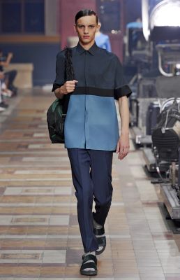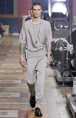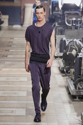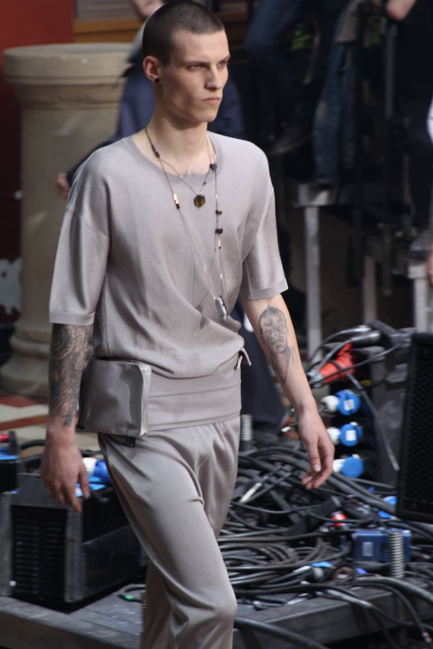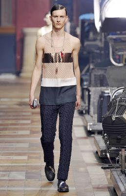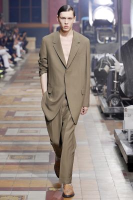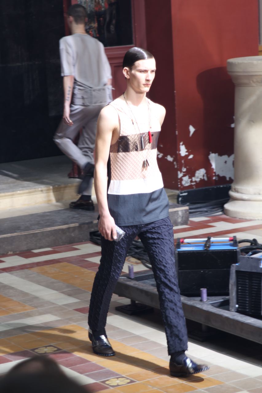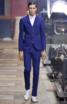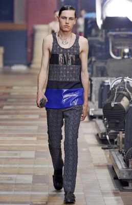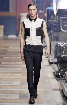 La collection printemps été 2014 de Lanvin Homme, créée par Lucas Ossendrijver mèle différents styles et s’inspire de différentes époques. Mais c’est surtout l’exposition d’une nouvelle modernité avec l’expérimentation de coupes, détails, tombés, textures et associations de matières. Les tissus sont très souples et apportent de la légèreté à toute la collection. Les couleurs sont des nuances de noir, gris, blanc, bleu marine, rouge cerise.