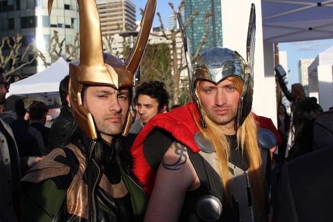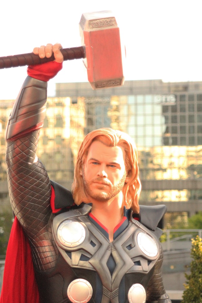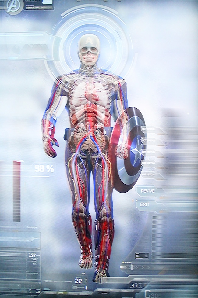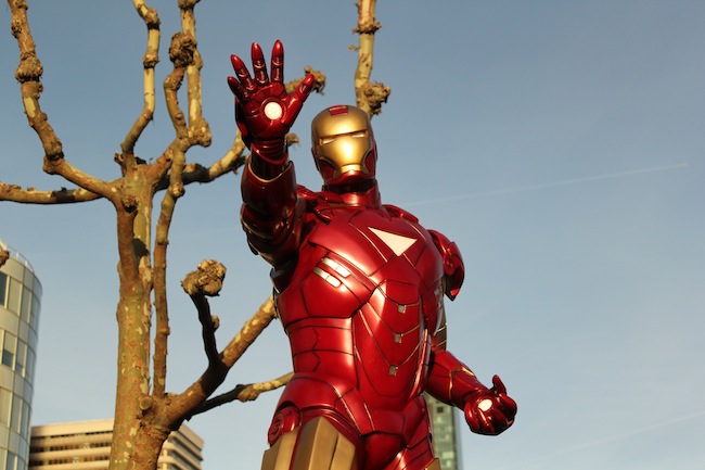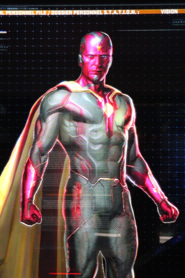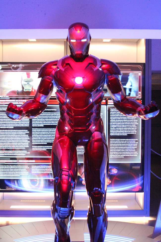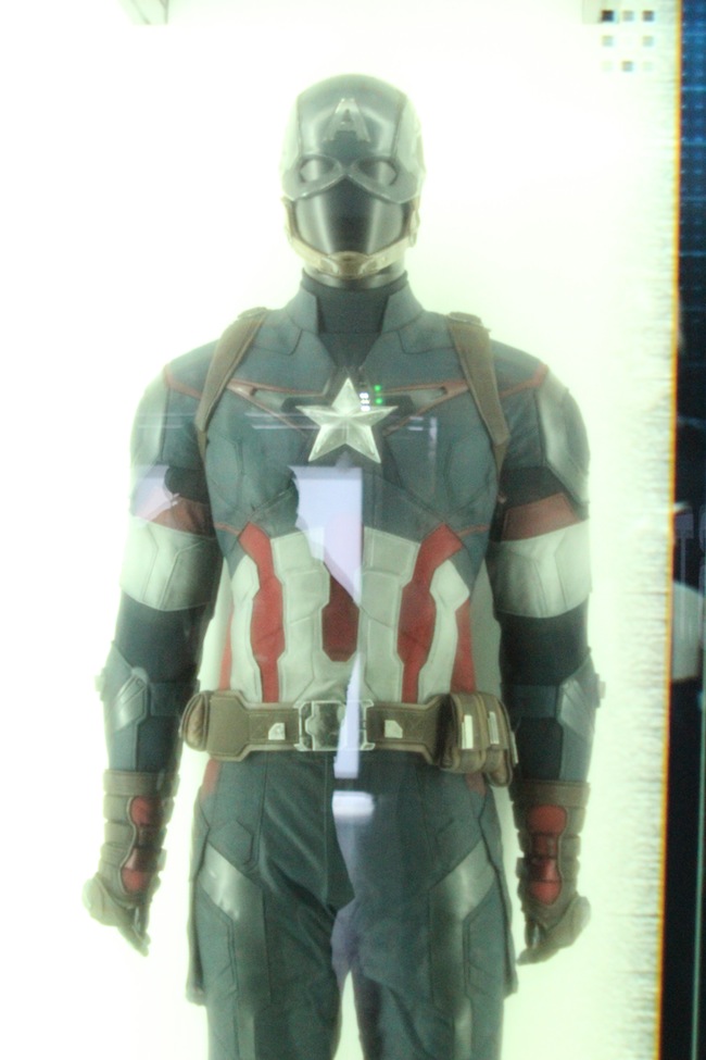 Depuis le 15 avril et jusqu’au 25 septembre, se tient l’exposition Marvel Avengers S.T.A.T.I.O.N à la Défense, sur l’esplanade, au pied de la tour Cœur Défense. Il ne s’agit pas d’une simple exposition. C’est une visite interactive qui s’effectue accompagné d’une appli à télécharger sur Smartphone. A l’entrée, des iPods sont distribués aux visiteurs qui ne peuvent pas, ou ne veulent pas, la télécharger. Tout au long de la visite, des jeux, questionnaires, tests, épreuves à surmonter sont proposés aux fans. L’objectif est qu’ils deviennent incollables sur les personnages des Avengers : Iron Man, Thor, Captain America, Hulk, Black Widow, Vision, Hawkeye. Parmi les objets exposés : l’armure d’Iron Man, le costume et le bouclier de Captain America, le casque d’Ant-Man, les armes de Hawkeye et de Black Widow. Je l’ai visitée hier à l’occasion du vernissage où quelques fans étaient déguisés.