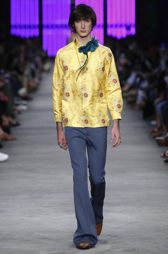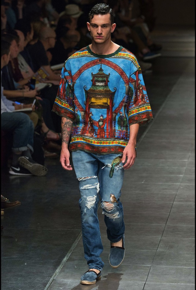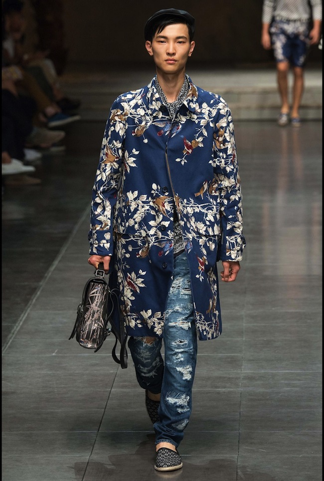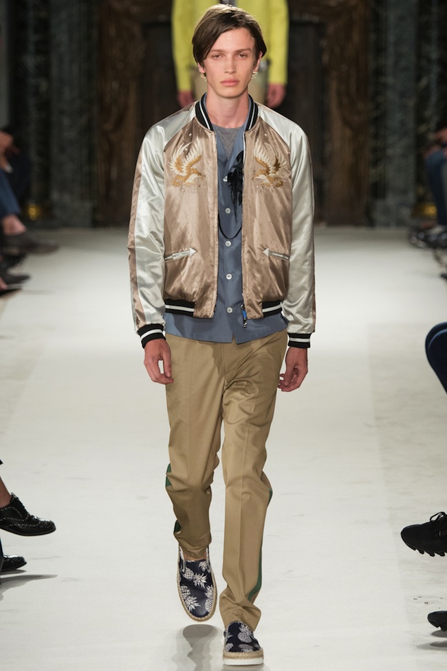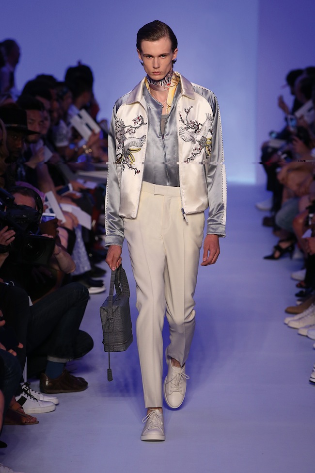 Soieries, satin de soie, kimonos, imprimés chinois ou japonnais avec des tigres, des bambous, des cerisiers, des dragons, des temples, veste col Mao et surtout beaucoup de Sukajan jackets, « blouson du souvenir » japonais,… Plusieurs collections homme cet été sont influencées par l’Extrême Orient, notamment la Chine et le Japon.