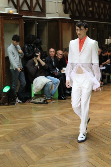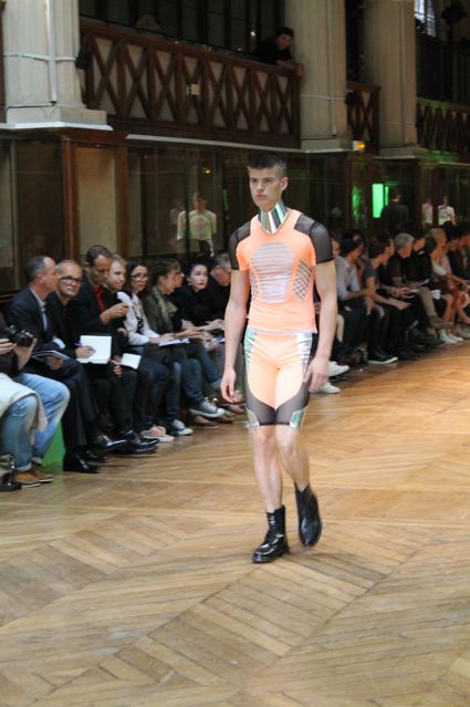 Je commence mes comptes rendus des défilés de la fashion week parisienne par la collection Mugler homme qui pour la deuxième saison est signée Nicola Formichetti, Directeur de la Création, et Romain Kremer, responsable de Création Homme.