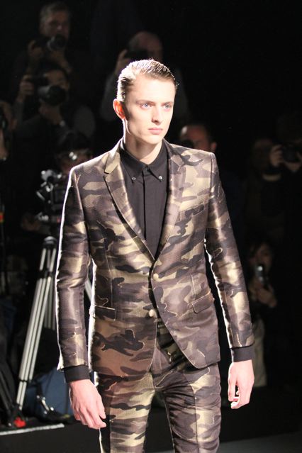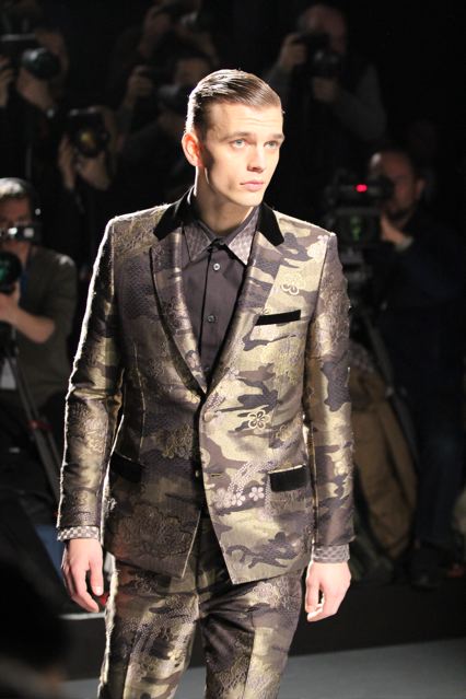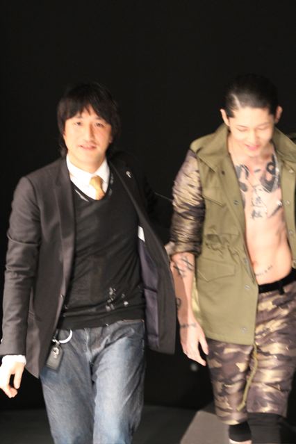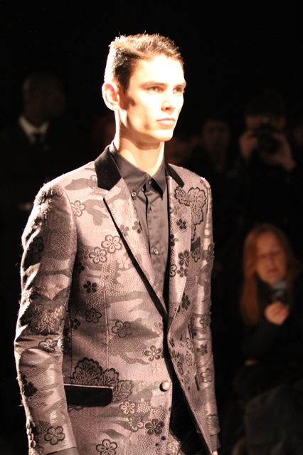 Je ne connaissais pas ce créateur et ce fut une excellente surprise. Durant le show, un guitariste survolté, Miyavi a donné un spectacle et un son époustouflants. Les vêtements sont superbes. Extrêmement travaillées avec plein de finitions cachées, la collection mêle le tailoring traditionnel à des détails militaires. Comme ces magnifiques motifs camouflage faits de fleurs.
