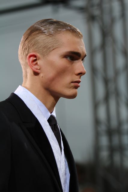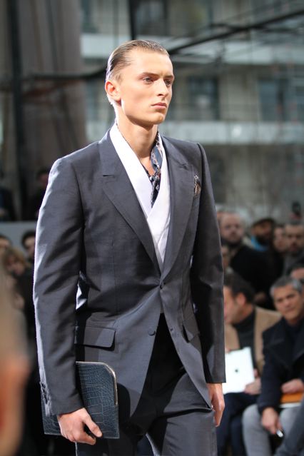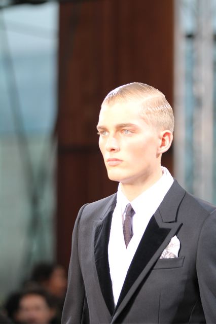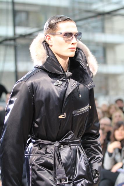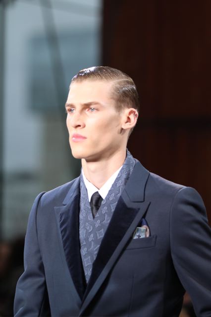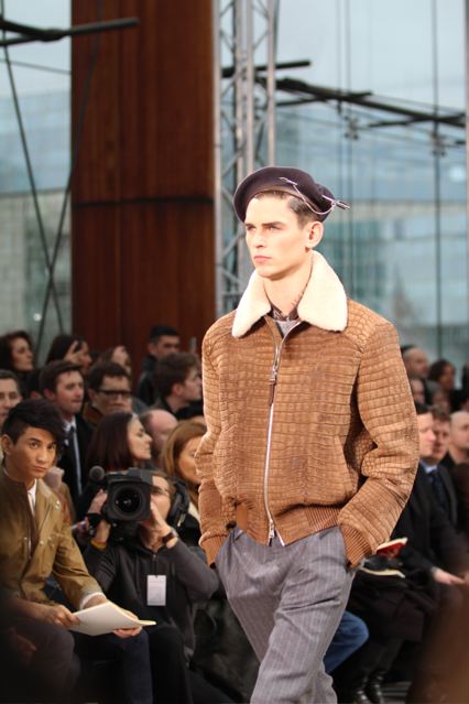 Sous la belle lumière naturelle de la verrière du Parc André Citroën, le défilé a débuté par un message d’accueil du DJ Giorgio Moroder qui a mixé un set pour l’occasion. Kangourou, accessoires en argent, crépon de soie, lézard, vison, crocodile, chameau, astrakan, c’était un défilé de matières luxueuses. La collection homme hiver 2012 de Kim Jones, directeur du style et du studio Louis Vuitton Homme sous la direction artistique de Marc Jacobs est un dialogue entre Paris et Tokyo, leurs mythologies et leur langage mode.