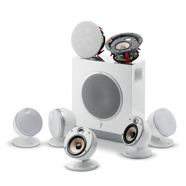 Cette solution home cinema se compose de 7 enceintes : cinq satellites, deux enceintes encastrable au plafond, et d’un caisson de grave. Dôme Flax 5.1.2. Fabriqué à Saint Etienne.