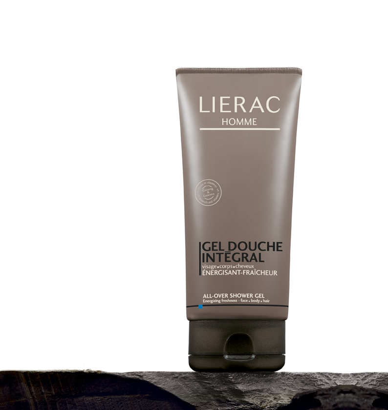 Lierac gel douche intégral.Des extraits de ginseng et de guarana, aux vertus stimulantes et tonifiantes, de la vitamine B5. Une action fraîcheur intense grâce à l’extrait de menthe et l’essence de citron. 10,90 euros. http://www.lierac-homme.com/