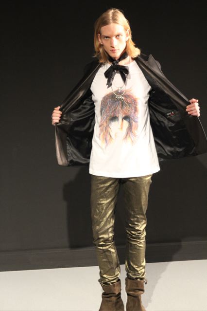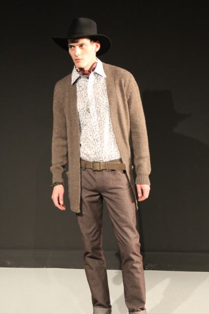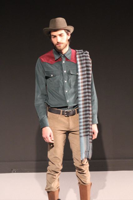 Cela se traduit avec des chemises western en velours mille raies avec oppo proposées dans différents coloris. Des vestes manteau en coton canevas. Des cardigans proposés en différentes longueurs. Des pantalons en velours, en tweed ou en laine chinée avec motifs chevron, jean huilé. Des chemises motifs Liberty (à petites fleurs)