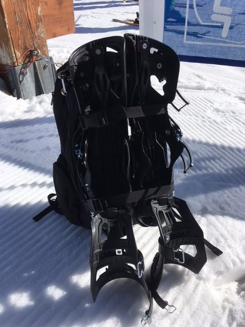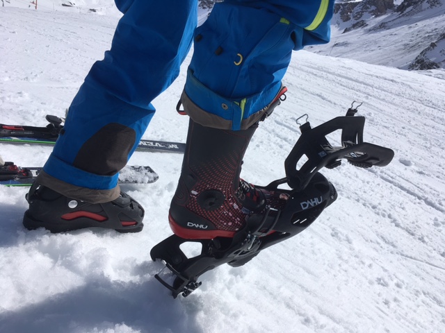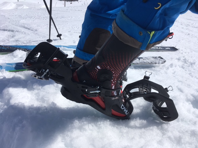 Il s’agit de chaussures dont la partie rigide est amovible, comme un exosquelette. Lorsqu’on la retire on se retrouve avec des après-ski aussi douillettes que des bottes fourrées ou des moonboots. Elles sont étanches et dotées d’une semelle antidérapante. Autant dire que c’est génial pour marcher, monter des escaliers, pique-niquer les pieds à l’aise et danser sur les tables de quelques bars d’altitude comme La Folie Douce. Une fois l’exosquelette remis en place, ma crainte a priori s’est révélée infondée. Sur les pistes, les sensations sont identiques à celles que procurent des chaussures classiques. Le pied est maintenu exactement de la même manière. Les chaussures fixées au ski de manière habituelle.