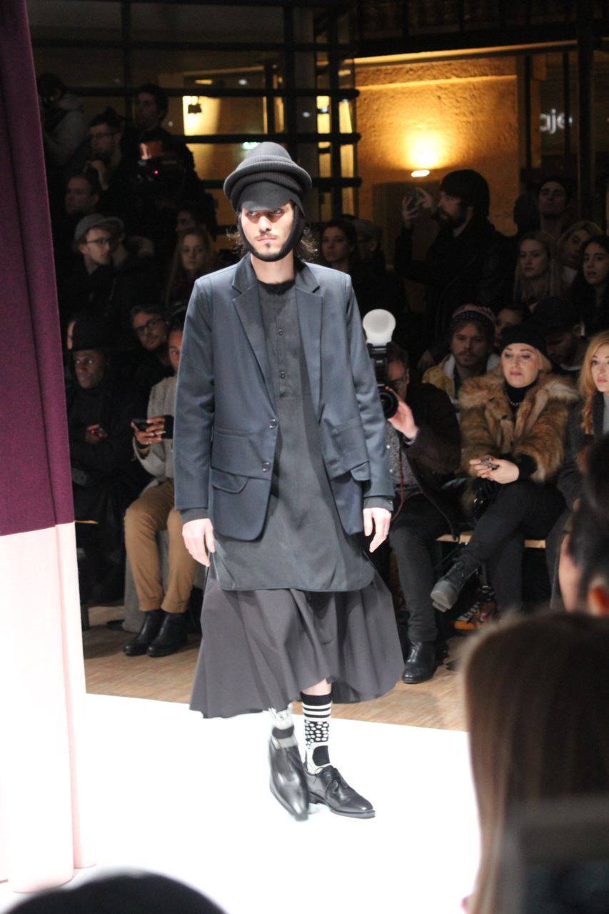 Les jupes pour hommes étaient assez courantes ces dernières années dans les défilés de mode, notamment chez Gaultier, Agnès b, Givenchy, Qasimi, Carlo Pignatelli, Kenzo, Walter Van Beirendonck, Rynshu. Elles se font bien plus rares aujourd’hui. Voici l’un des rares modèles présentés lors de la dernière fashion week. Une création du danois Henrik Vibskov, qui a notamment réalisé une centaine de costumes pour Medulla, le spectacle de Björk.