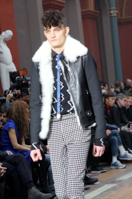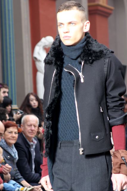 Un manteau tout en volume et sans doublure. Un blouson biker en cuir doublé de fourrure et aux coutures élastiques. Une longue écharpe frangée portée en trompe-l’œil sous un blouson préfigure une jupe ethnique. Des pantalons droits inspirés des années 60 skinny ou évasés. Des chemises à col collé et sans bouton. Des mélanges de textures : fourrure teintée, cuir très fin, laine bouillie et résille coton.