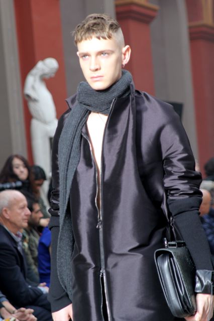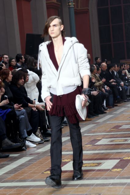 Pour Lanvin Homme, Alber Elbaz et Lucas Ossendrijver ont imaginé les silhouettes de la collection automne hiver 2014 « Comme des reflets de la personnalité de chacun des modèles. En affirmant leur authenticité, ils esquivent l’anonymat d’un monde globalisé par Internet. Cette collection, ancrée dans le présent, joue sur les proportions, les coupes, les matières et les couleurs “digitales“. Une liberté, luxe véritable, à l’écoute des besoins de l’homme d’aujourd’hui. Tout est donc question d’options et de choix dès les premiers passages ».