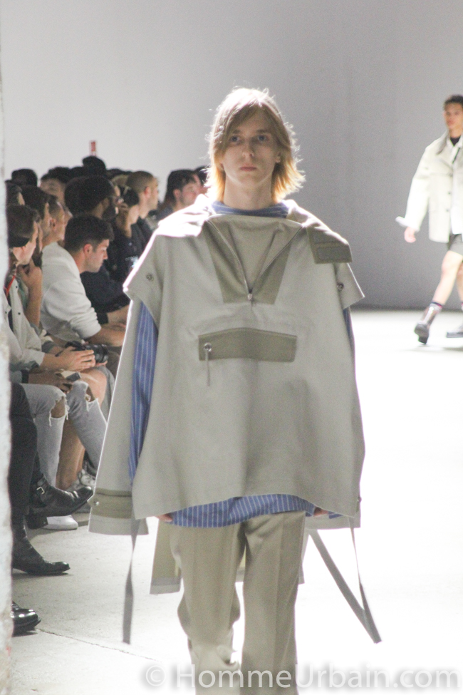 Sur les vestes sont posés tour à tour un gilet de pêcheur en filet ou un débardeur en coton matelassé doublé de satin, comme autant de vêtements de protection.