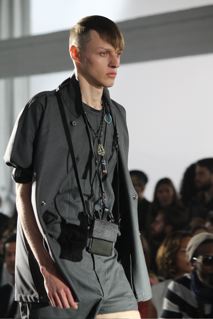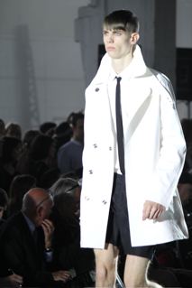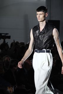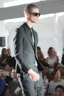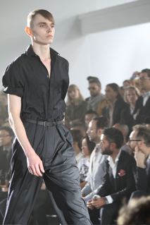 La collection présente des mini-shorts, des trenchs, des vestes près du corps à boutonnage simple. Certaines très courtes pour une silhouette élancée. D’autres amples, sans manche à double boutonnage croisé. Des imperméables très amples. Des pantalons à plis, larges à taille haute. D’autres sans plis, slim, à taille basse qui ont ma préférence. Et surtout la collection compte plusieurs combinaisons, l’une des pièces importantes de l’été 2013, avec entre autres un modèle en voile léger et des détails en python.