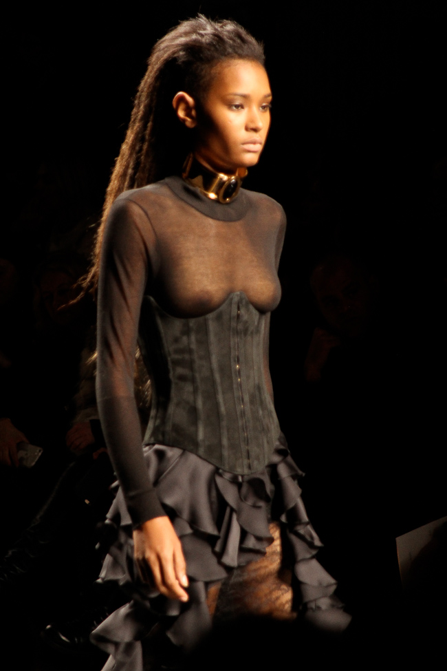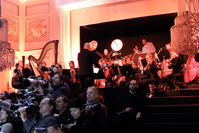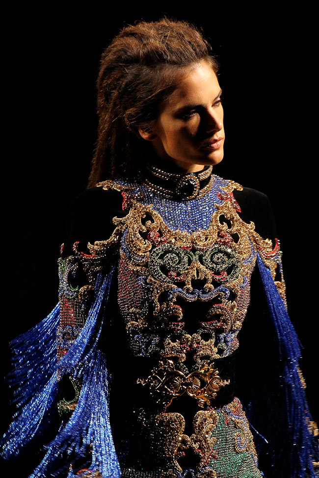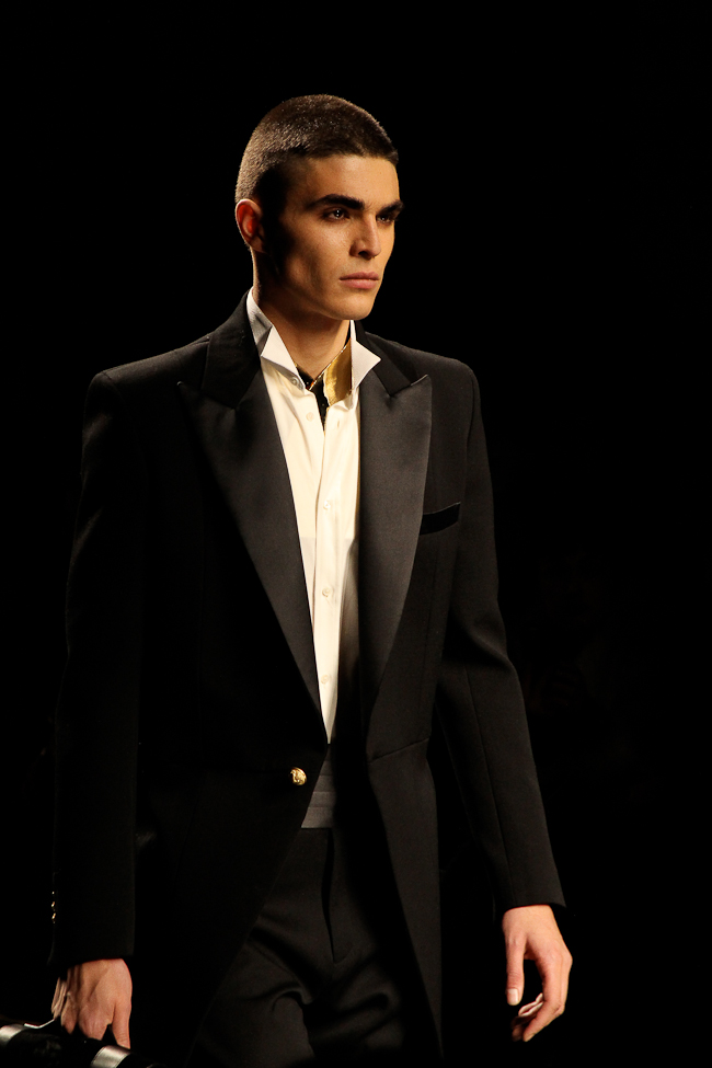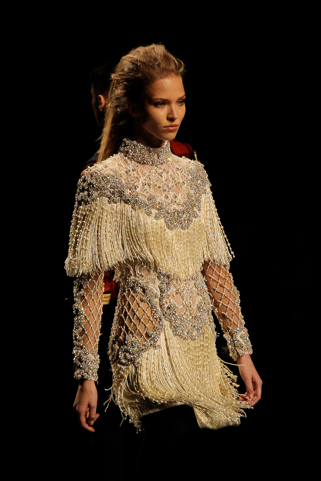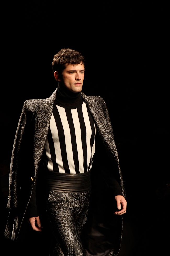 Ça brille ! Quel faste ! Ce défilé est probablement le plus spectaculaire de la saison. Dans le somptueux Hôtel Potocki à Paris, avec un orchestre d’une vingtaine de musiciens, violonistes, harpiste…, Olivier Rousteing a présenté un déploiement de richesse, de magnificence avec des broderies brillant de mille feux (ce qui ne se voit pas sur les photos). C’était parfois presque trop avec un coté prince charmant au bal.