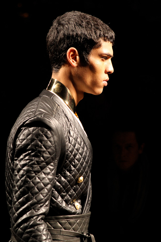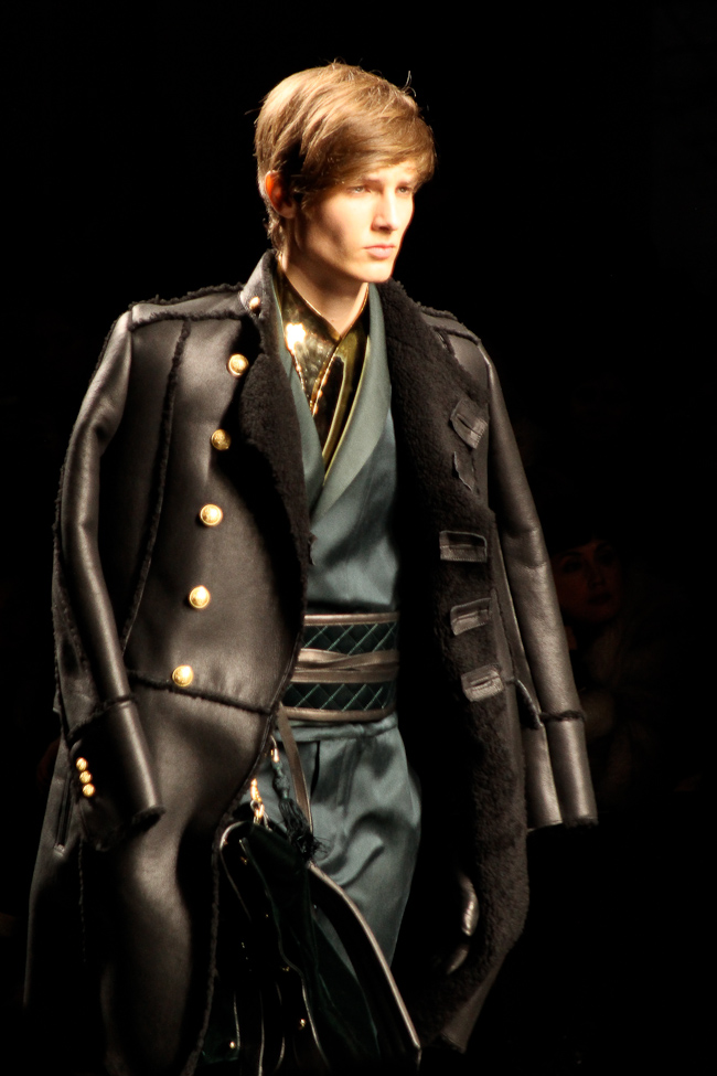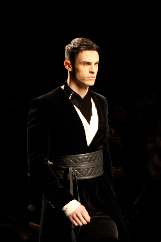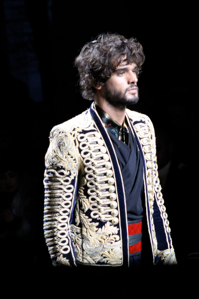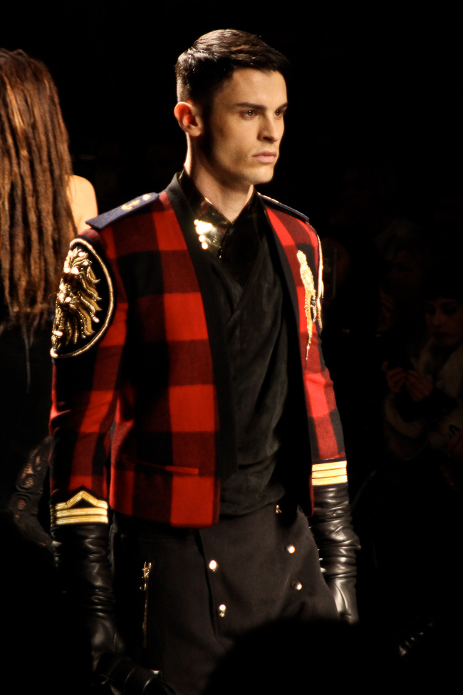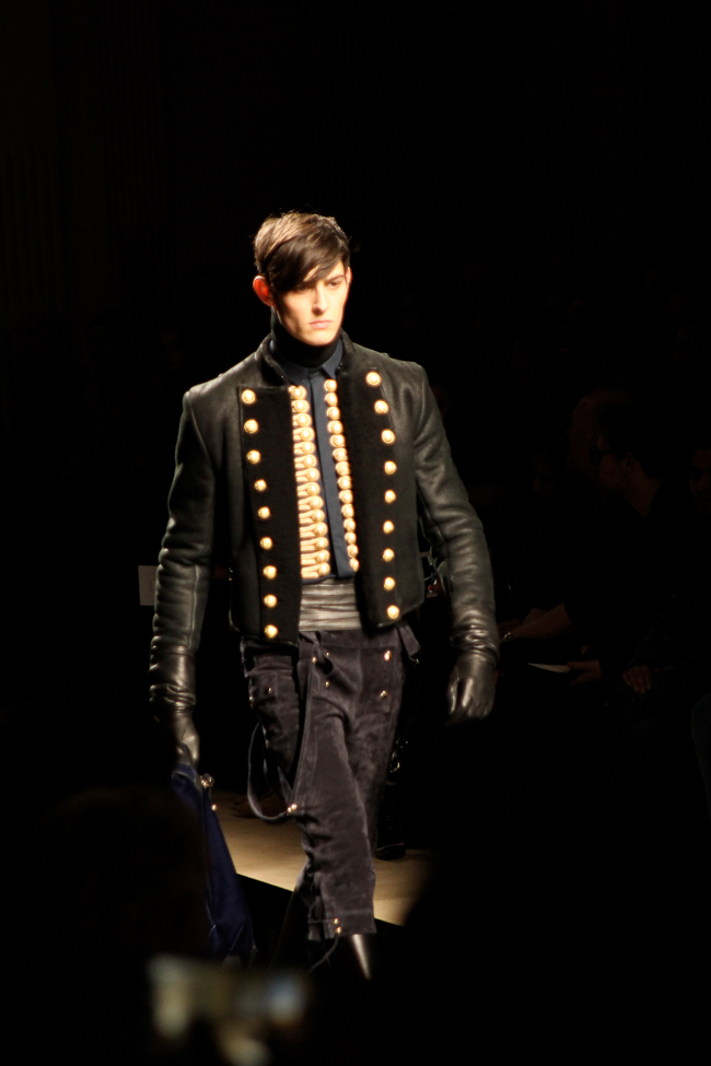 Mais la perfection des coupes, le style officier, les cuirs matelassés, font de ce défilé l’un de mes préférés de la fashion week. Le créateur explique que sa collection s’inspire de l’état d’esprit et du style des aventuriers, soldats et scientifiques à leur retour d’explorations, à Paris. « Derrière notre inspiration, une appréciation du rôle de Paris comme ville lumière. Cette ville a une histoire longue et unique d’ouverture sur le monde et de célébration de ce qu’il offre de meilleur. Quand les explorateurs revenaient à Paris, ils excitaient Paris avec leurs découvertes ». La collection combine des influences traditionnelles françaises et étrangères aristocratiques et militaires dans un style urbain actuel. On retrouve des tartans écossais, des Jacquards français et lainages japonais.