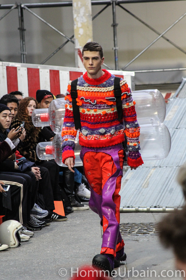 Là, j’ai regroupé des vêtements aux couleurs bariolées, des looks qui mêlent tayloring et sportswear, des looks excentriques comme ceux que l’on trouve en photos sur les comptes Instagram de fashionistas, d’autres inspirés de fétichismes, ou qui semblent s’inspirer des gilets sauvetage des migrants, de tenues de SDF, etc.