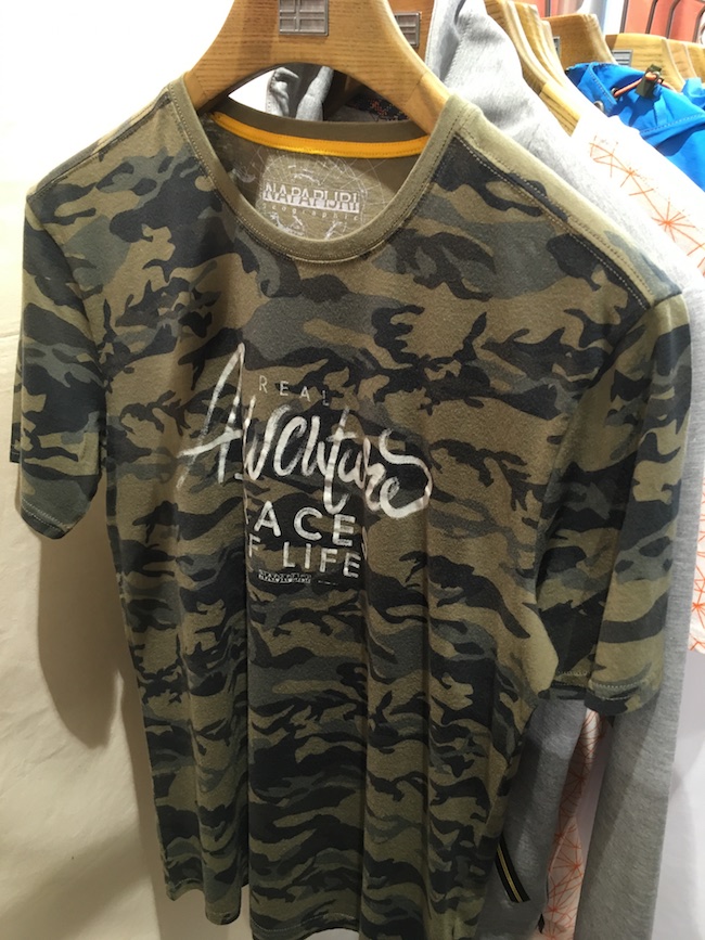 Depuis les débuts de ce magazine, à chaque saison, nous présentons les motifs camouflage militaire comme l’une des tendances… bah ça continue cet été. On en trouve partout. Cet imprimé, qui s’inspire des vêtements de combats des militaires, est plus moins revisité, se porte avec des chemises à fleurs, du denim, mais pas en total look car il ne s’agit pas de se déguiser en soldat. Il donne de l’assurance par son évocation de la virilité. La tendance vient probablement d’une sympathie éprouvée pour l’armée avec la série d’attentats que nous avons connue et à des envies d’amour et de paix.