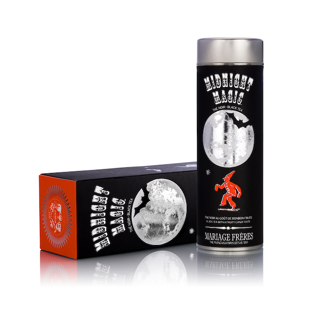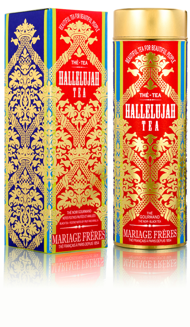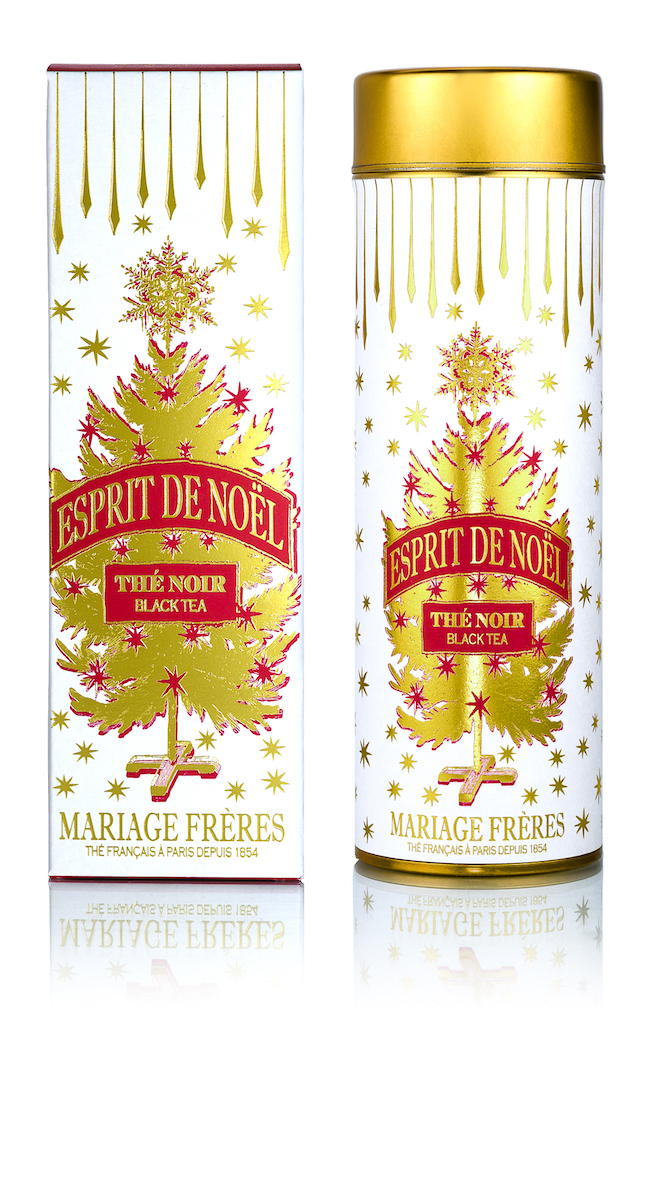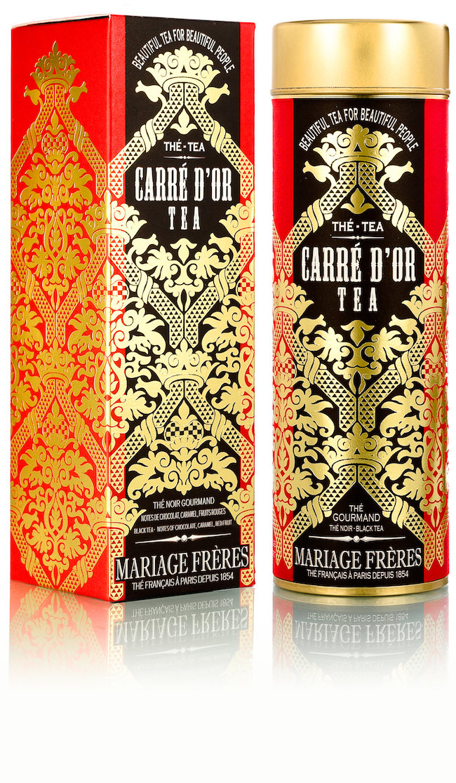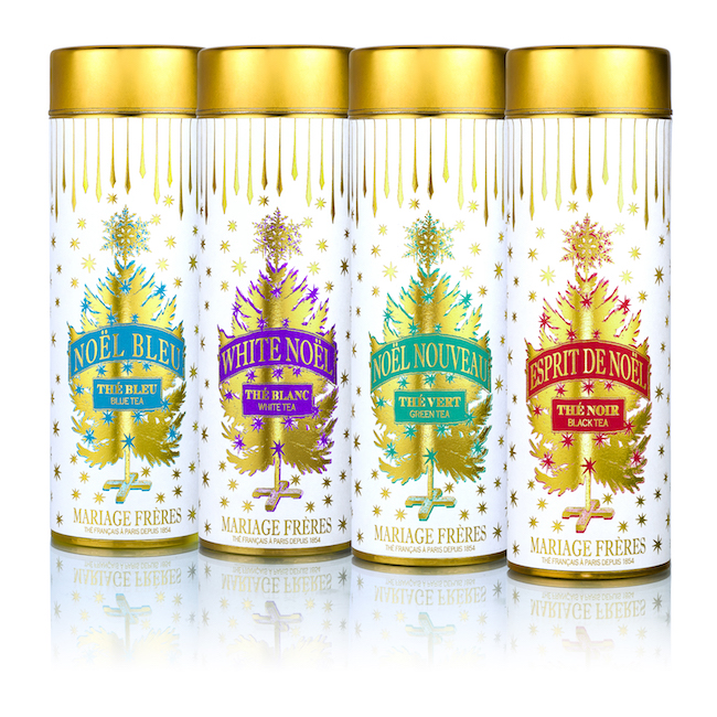 Mariage Frères propose toutes sortes de thés de Noël et de thé d’automne. Créé par Mariage Frères en 1984, le thé « Esprit de Noël » est une composition festive de thé noir organique agrémenté de cannelle, mandarine, orange, amandes et vanille. Noël bleu : Un thé bleu associé à la cannelle, vanille et écorces d’orange. Noël Nouveau est un thé vert organique avec des notes épicées et fruitées. White Noël : notes fraîches, abricotées des jeunes feuilles et bourgeons de thé blanc organique. Thé Hallelujah : Thé noir aux notes d’agrumes et de fruits rehaussées de vanille. Midnight Magic : un thé noir au goût de bonbon fruité. Le thé carré d’or est inspiré d’une icône gourmande de Mariage frère, dessert au chocolat noir avec un cœur de caramel sur un coulis de groseilles.