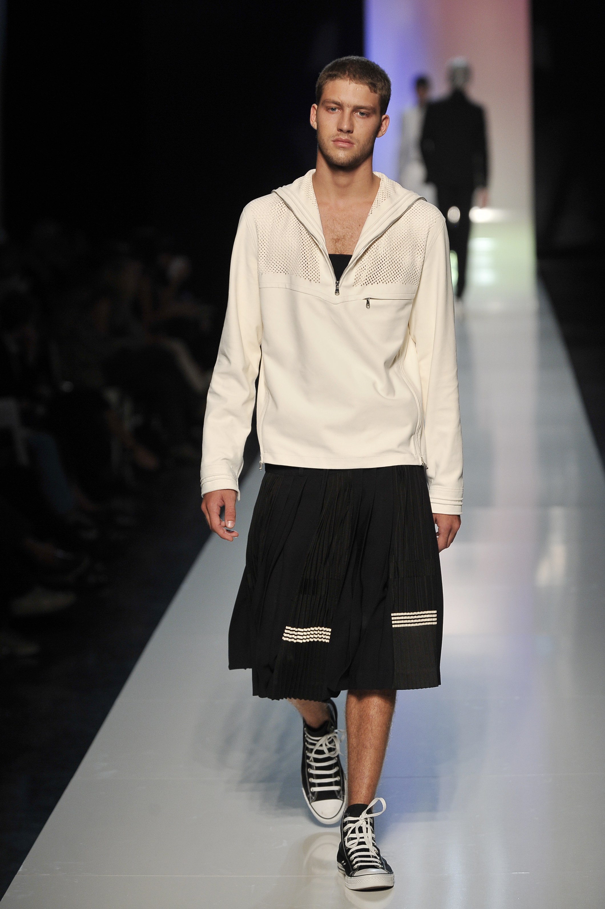 Jean-Paul Gaultier présente plusieurs jupes dans sa collection printemps-été 2010 dans sa ligne Gaultier2