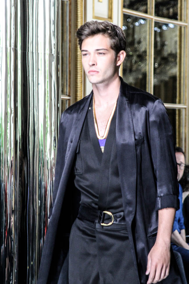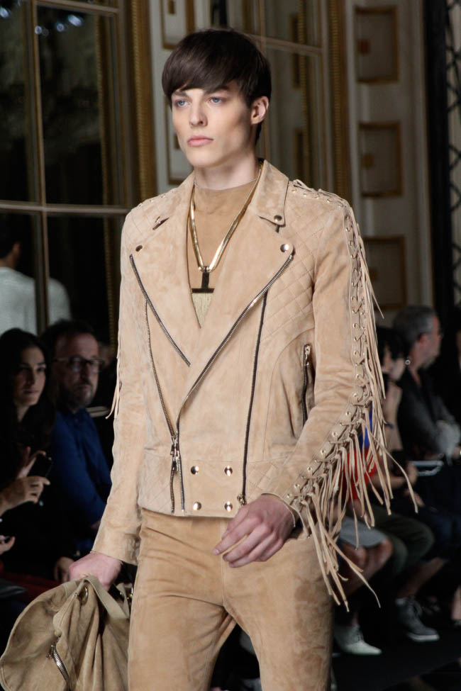 Couchers de soleil intense, vagues incroyables, plages immenses… Olivier Rousteing, directeur artistique de Balmain explique que la collection homme été 2017 lui a été inspirée par les photos publiées sur Instagram par certains mannequins de son défilé. Des amis se détendent après une journée passée au soleil à surfer et nager, espérant que la nuit ne s’arrête jamais. Les coupes sont simples et relax avec des ponchos, capes, longs sweaters, joggers et pantalons volumineux.