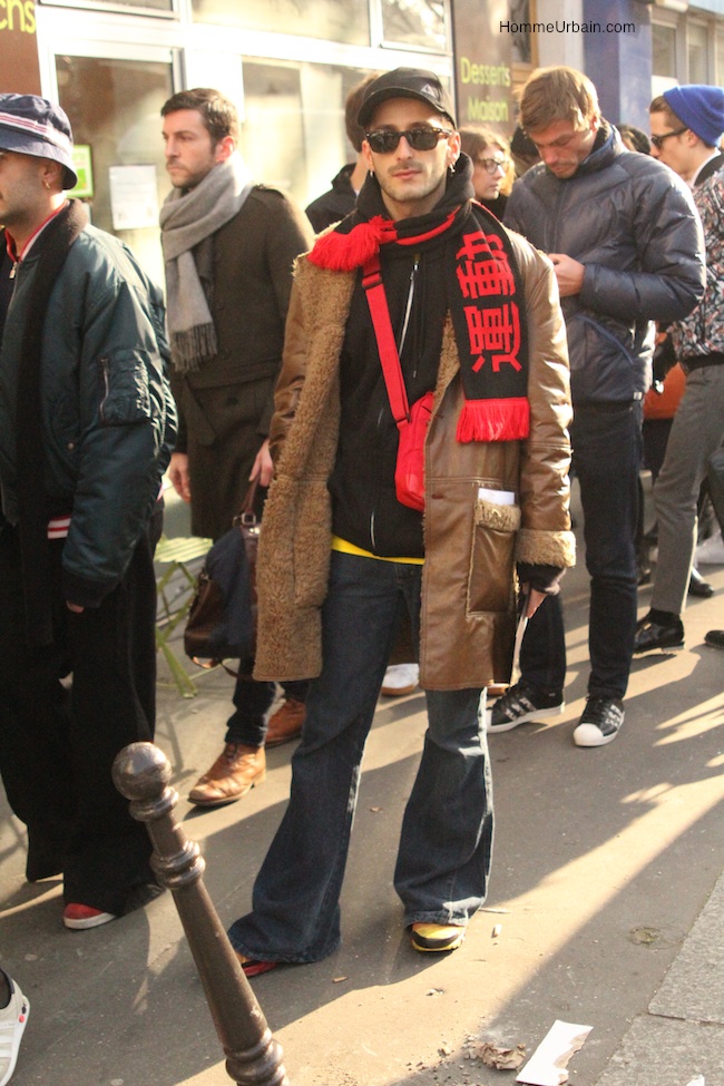 La semaine de la mode homme commence. C’est une bonne période pour réaliser des photos « street style » prises sur le vif donnant un panorama de la mode actuelle. On retrouve dans la rue la plupart des principales tendances de cet hiver, comme les influences seventies, le mouton retourné, les motifs camouflage, les coloris rouges, oranges, marron, marsala.