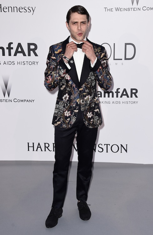 Changement total de look au Cap d’Antibes au « Cinema Against AIDS Gala », un smoking avec une veste à motifs floraux porté avec un noeud papillon (Photo by Ian Gavan/Getty Images)