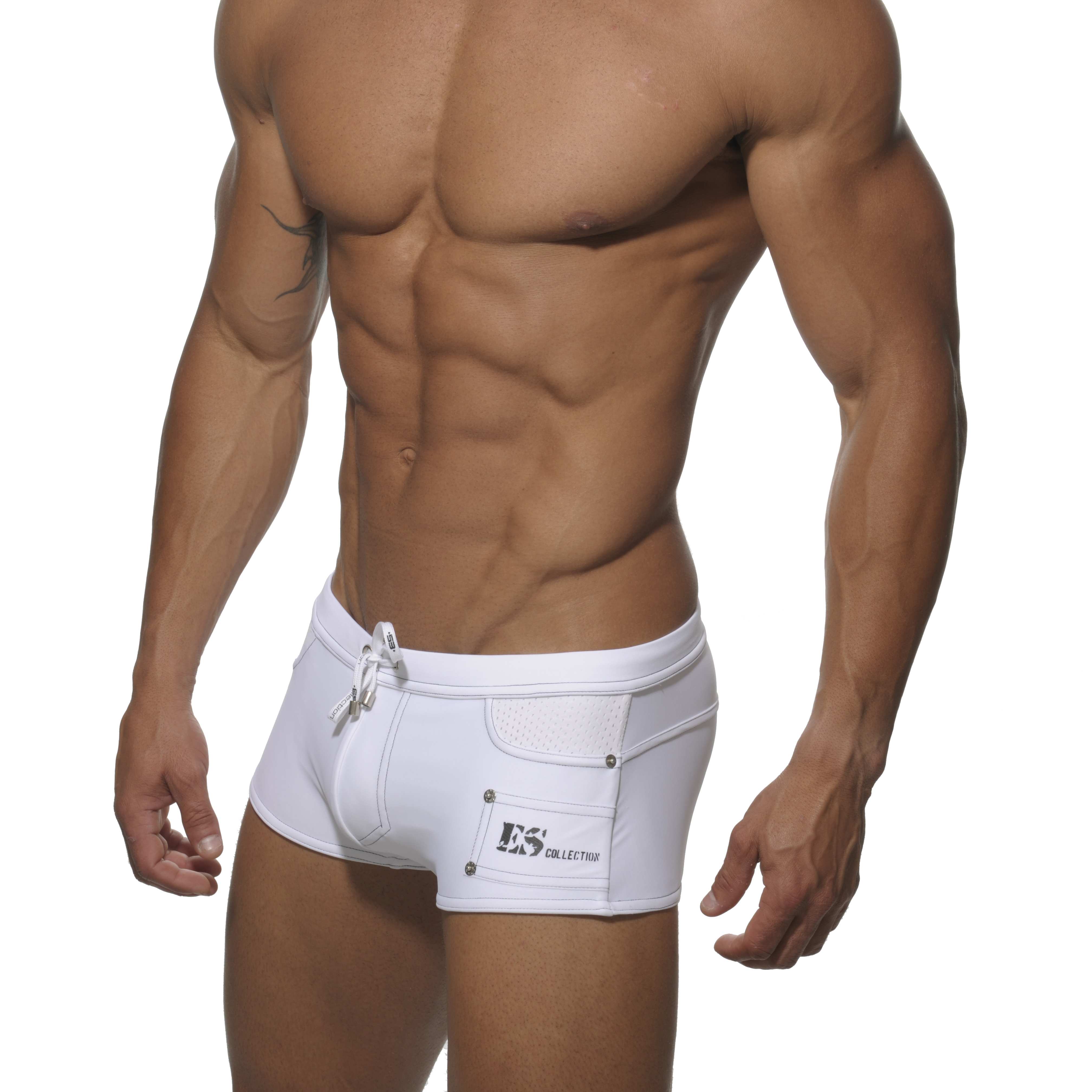 Les shorts et caleçons de bain (tissu flottant), sont adaptés à tous types de morphologie. Mais si l’on a les jambes très fines, il faut éviter un modèle trop ample. Si l’on est petit et trappu, mieux vaut le choisir très court. Si l’on est plutôt rond, l’idéal est un caleçon avec des fronces pour être à l’aise, mais en évitant les formes trop larges qui donnent une allure encore plus tassée. On peut les répartir en 3 familles : ceux qui imitent un short de ville à poche, ceux qui ressemblent à un short de sport et ceux qui sont semblables à un caleçon.