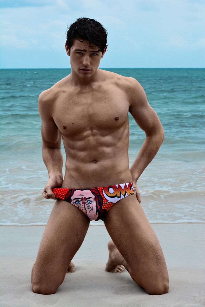 Pour ceux qui aiment se faire remarquer, la marque australienne Marcuse propose des maillots de bain homme avec un imprimé pas discret du tout reprenant le dessin d’un comic.
