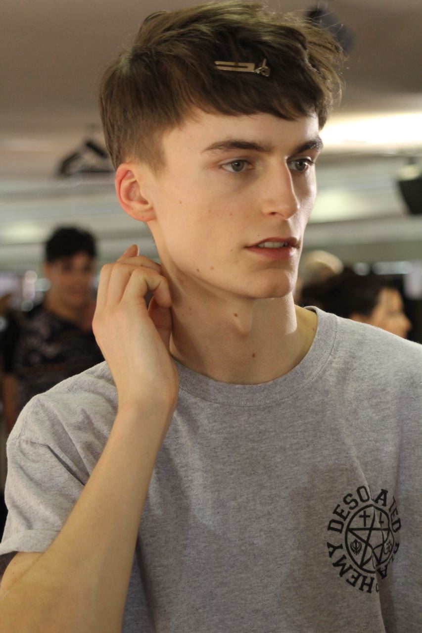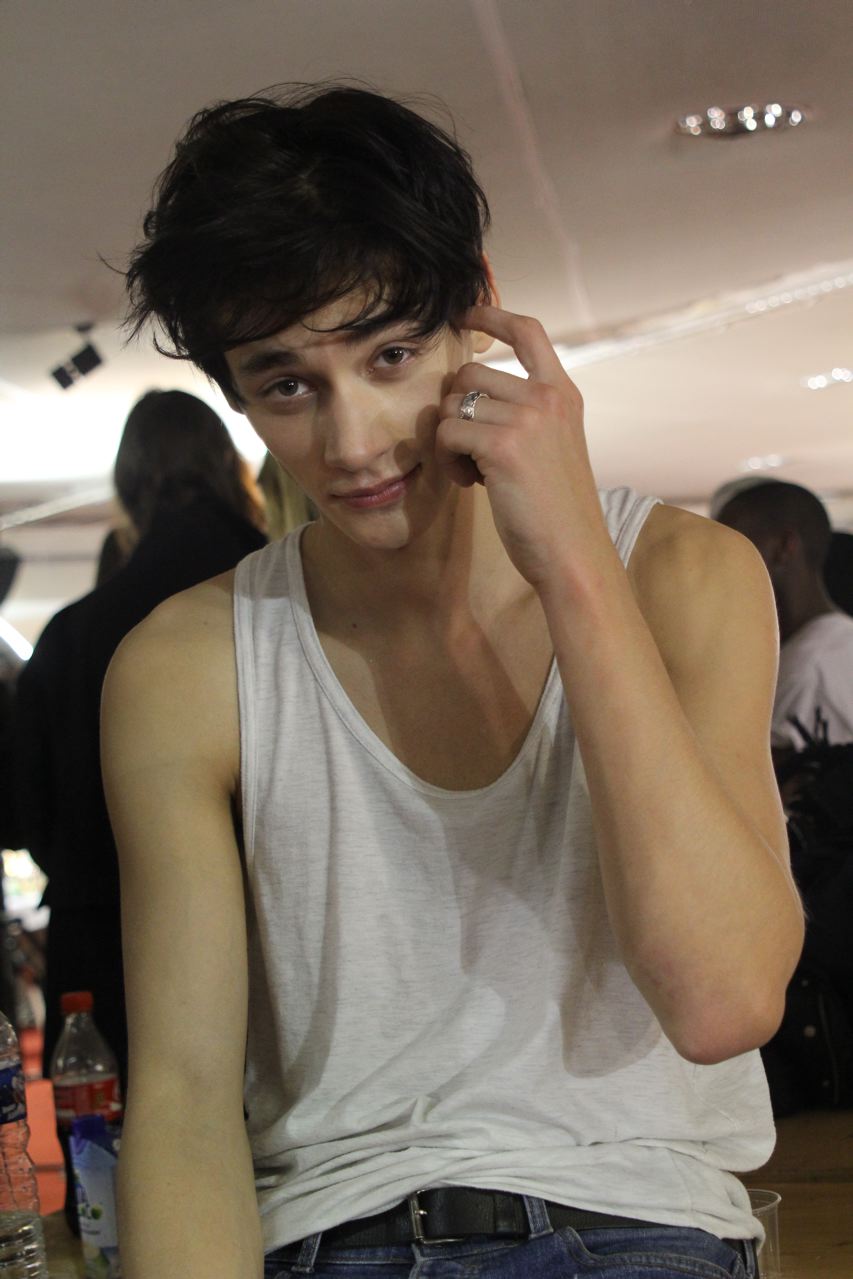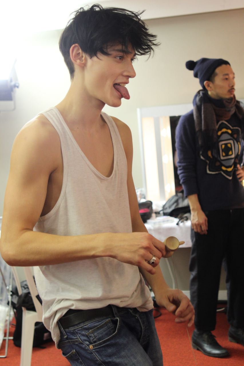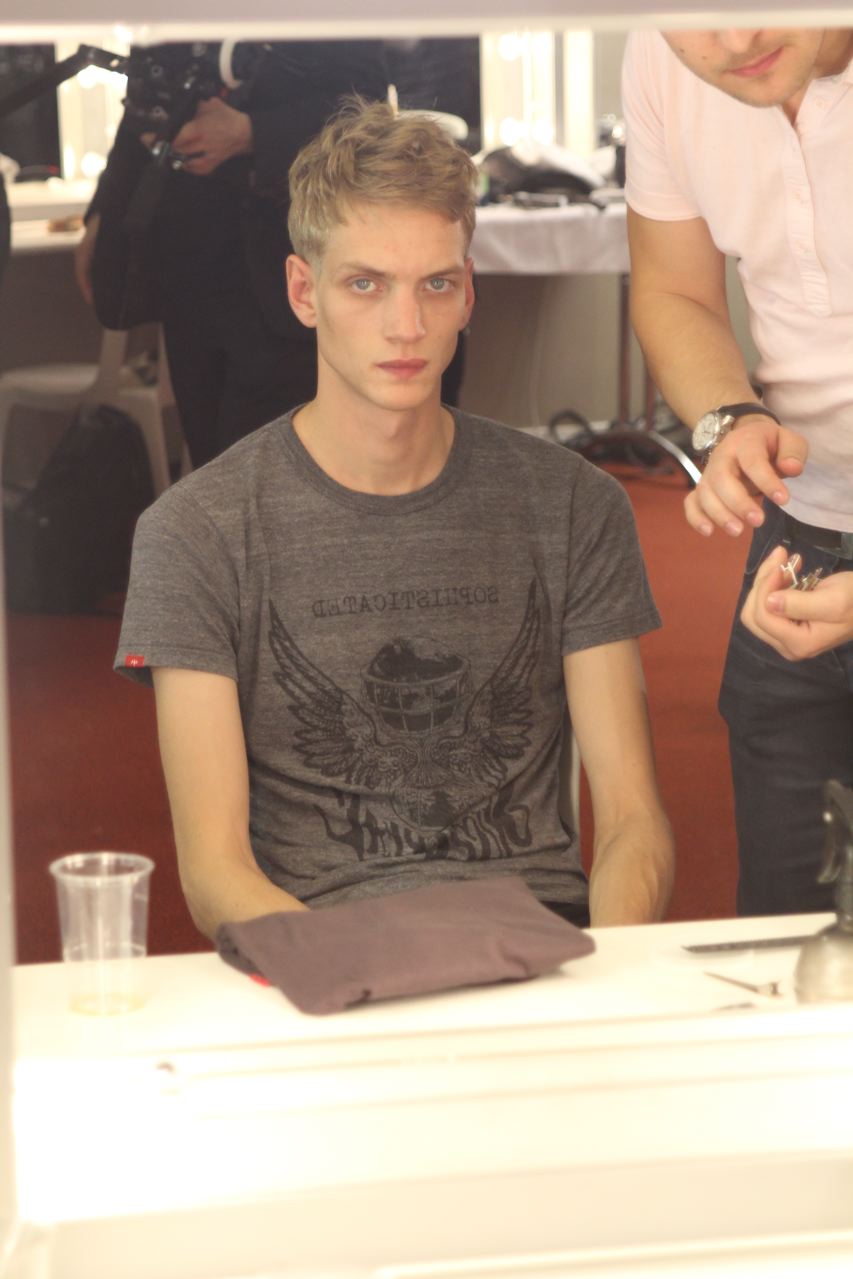 Thomas Penfound, Timur Simakov, Simon Kotyk, Marc-André Turgeon, Paul Boche, Abiah et d’autres mannequins en back stage du défilé de Paul Smith.