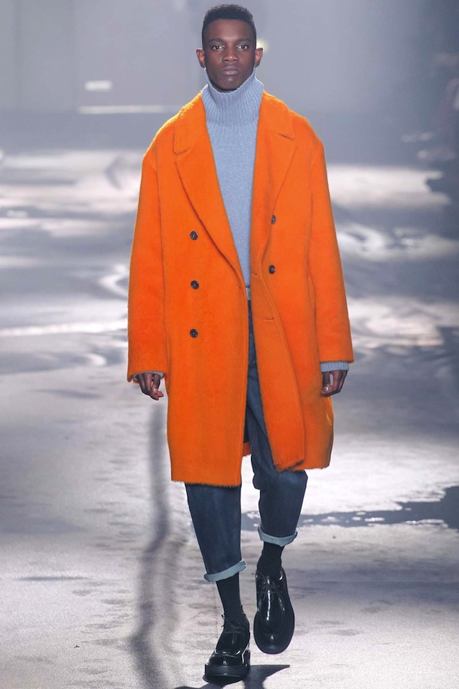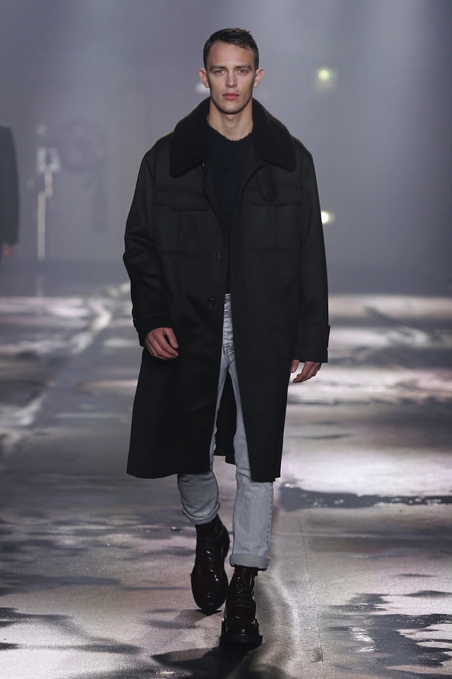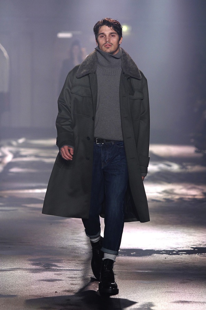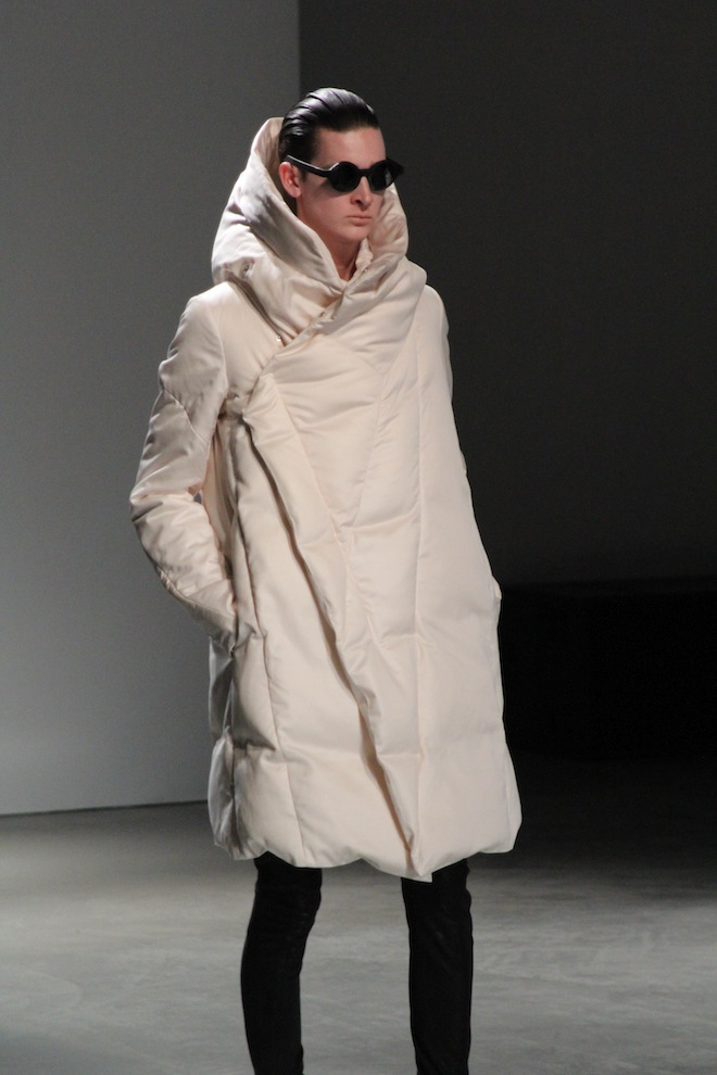 Des manteaux à la coupe droite, XXL avec des épaules tombantes, ressemblant à des peignoirs, qui semblent parfois trop grands pour les mannequins qui les portent. Ils sont en draps de laine, ou en laine bouillie, en cachemire, en peau lainée, en fourrure, ou même en duvet.