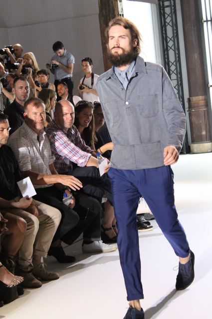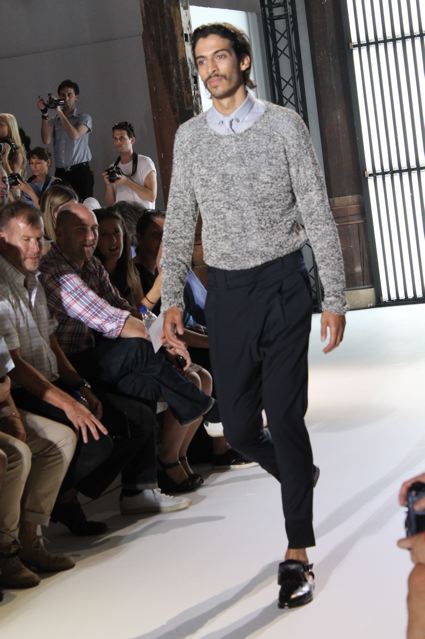 Avec des coupes classiques, Paul Smith parvient à présenter une collection jeune, que l’on qualifierait dans certains magazines de « sport » avec des aplats de couleurs (l’une des grandes tendances actuelles). Autre bonne idée : des tissus différents qui donnent à chacun des vêtements portés un aspect, notamment un éclat, différent tout en nuances.